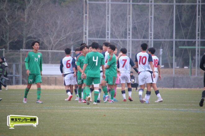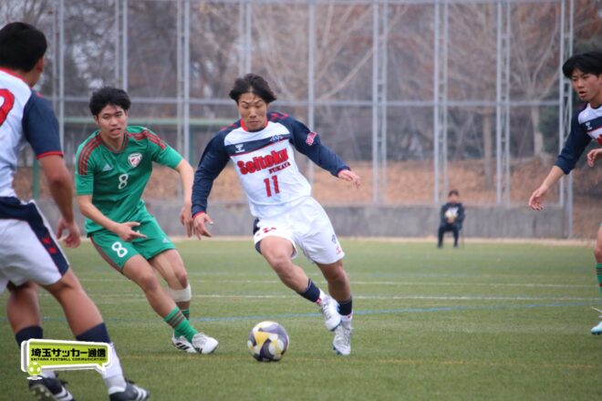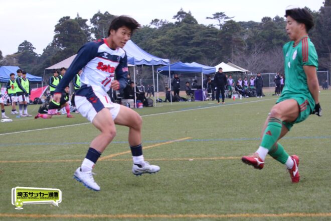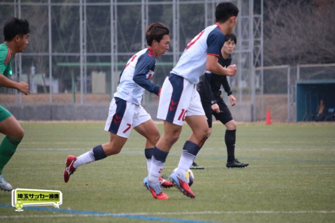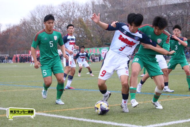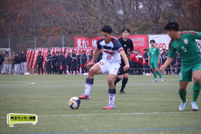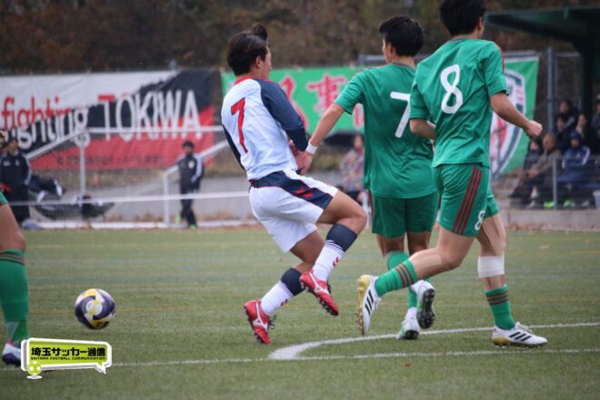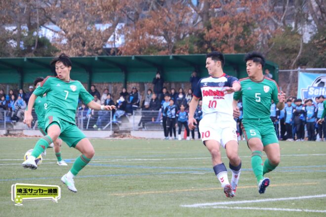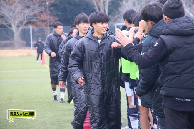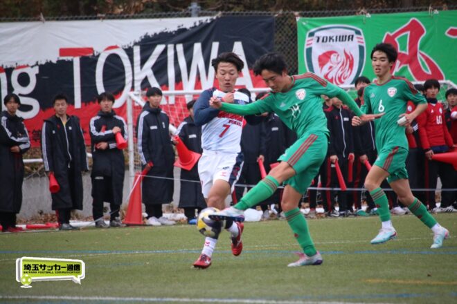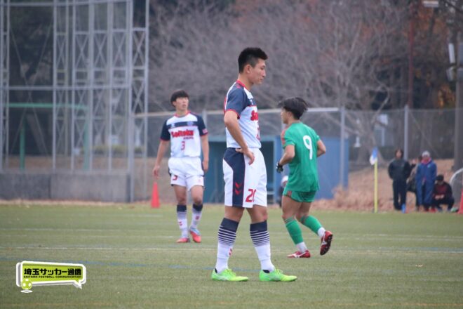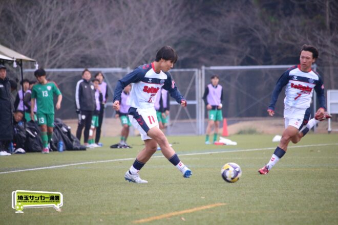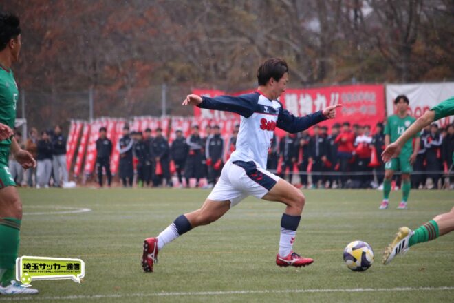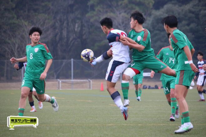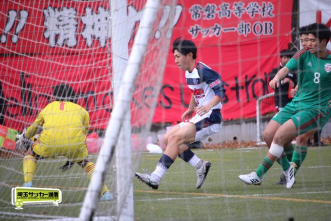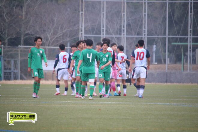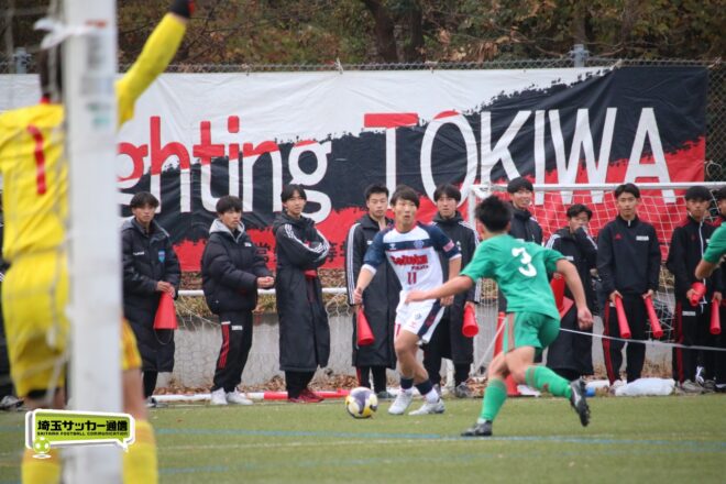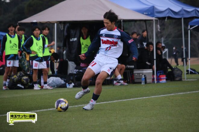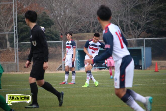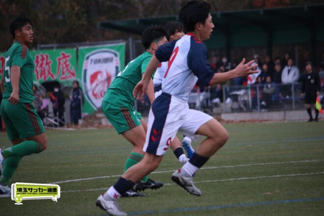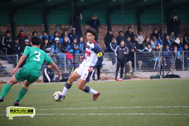 中盤ではMF白川成夢(3年)が選手権予選初戦となった川越城西戦以来のスタメンに復帰。MF朝烏真大(3年)主将、MF松尾泰希(2年)、MF鯨井遥翔(3年)のトライアングルでセカンドボールに先に触ることを徹底し、前線では188cmの長身FW 頓宮琥太郎(3年)に当てながら、スピードに優れるFW川上稜介(3年)が裏を狙い、そこでセットプレーを獲得する。