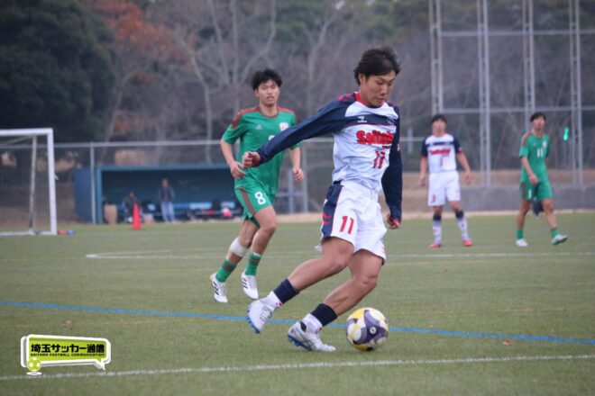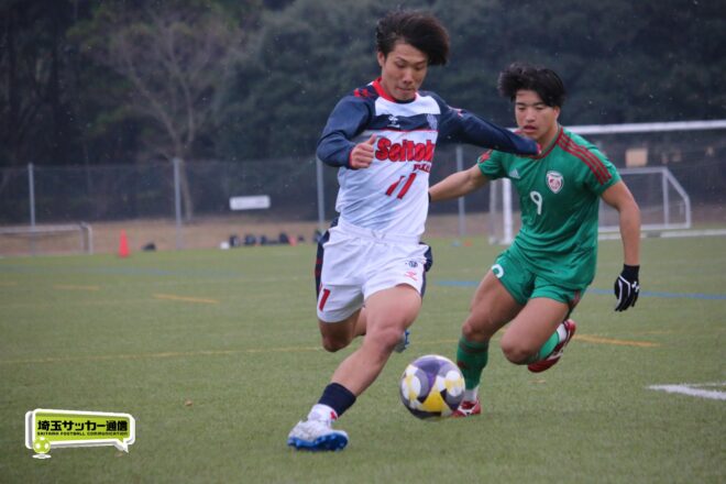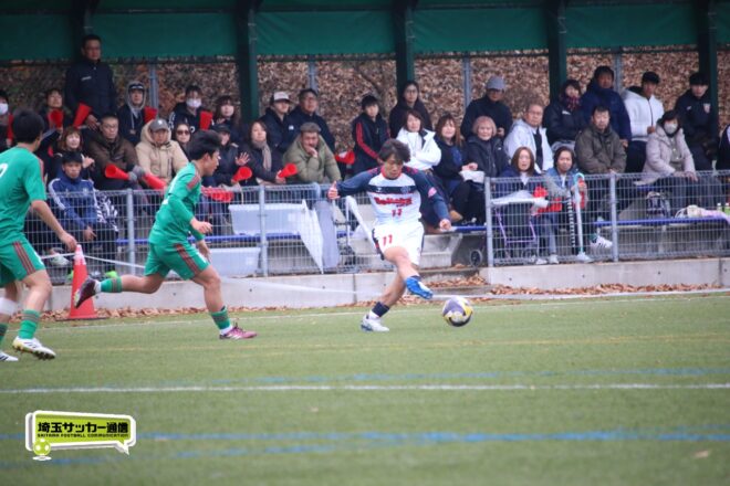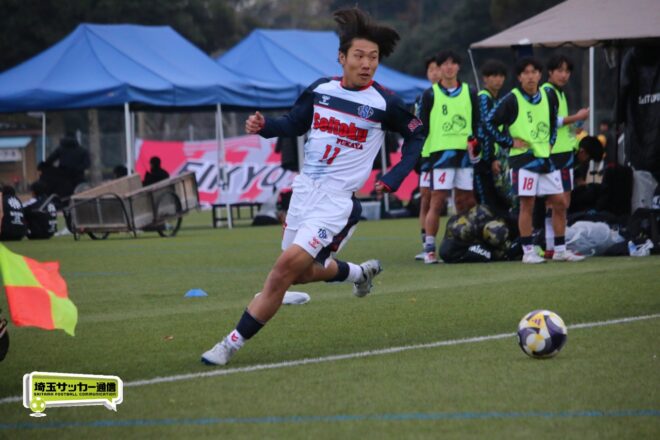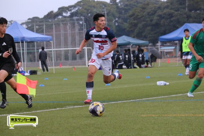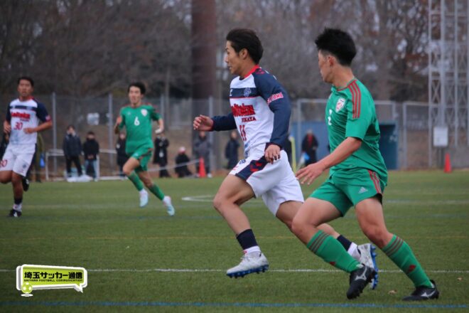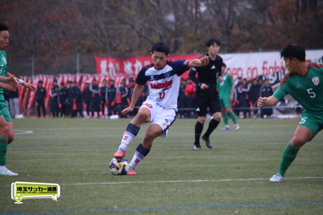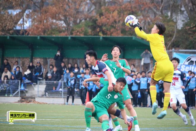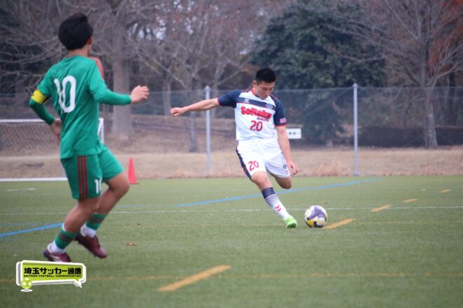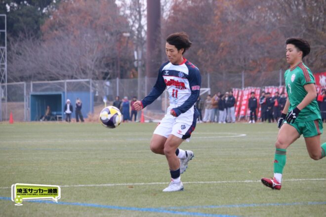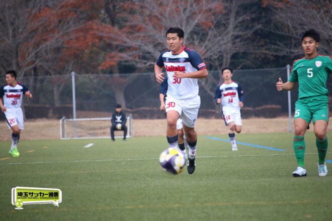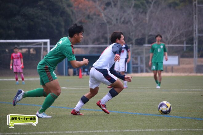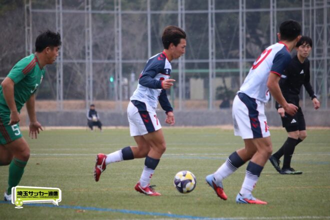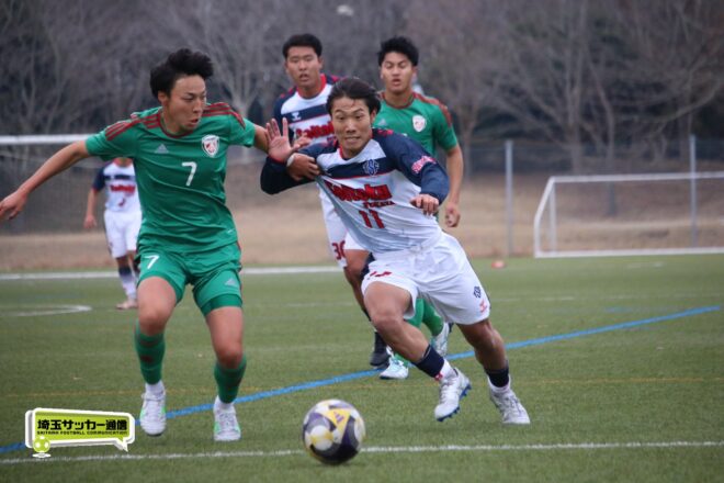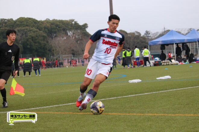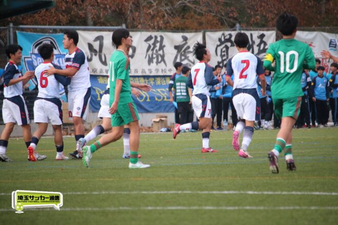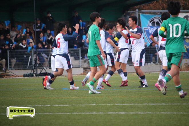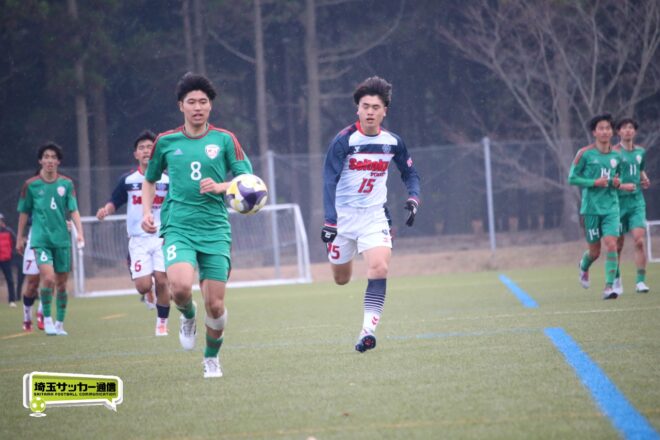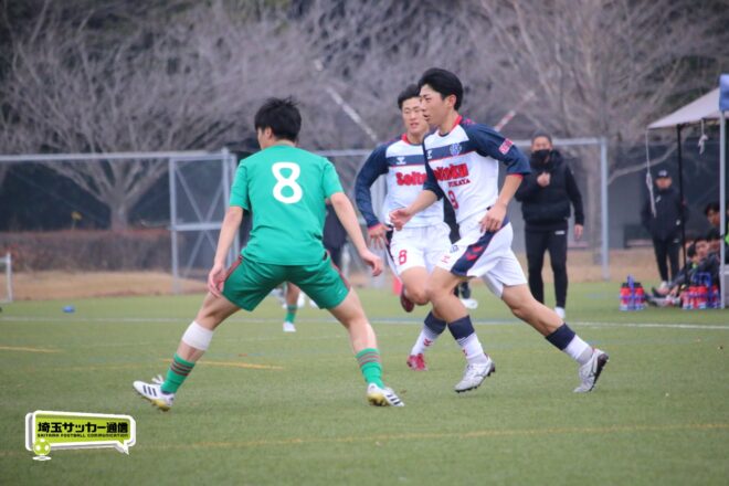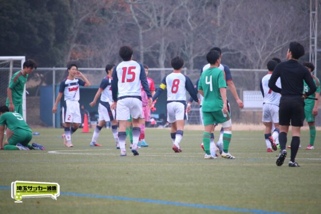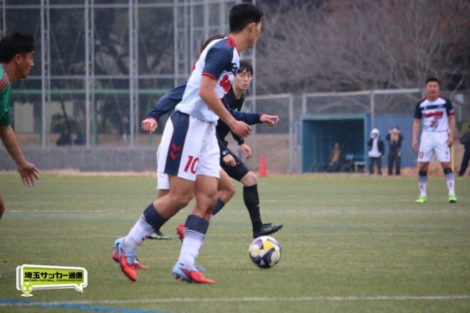 中盤ではMF白川成夢(3年)が選手権予選初戦となった川越城西戦以来のスタメンに復帰。MF朝烏真大(3年)主将、MF松尾泰希(2年)、MF鯨井遥翔(3年)のトライアングルでセカンドボールに先に触ることを徹底し、前線では188cmの長身FW 頓宮琥太郎(3年)に当てながら、スピードに優れるFW川上稜介(3年)が裏を狙い、そこでセットプレーを獲得する。