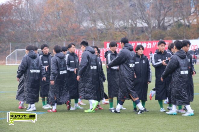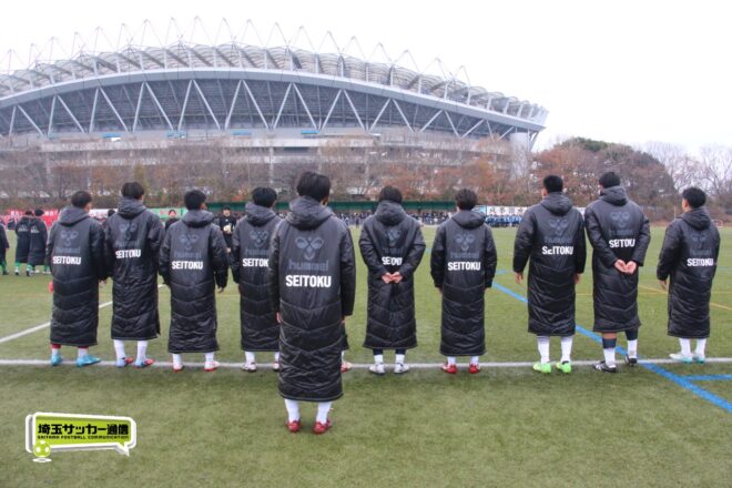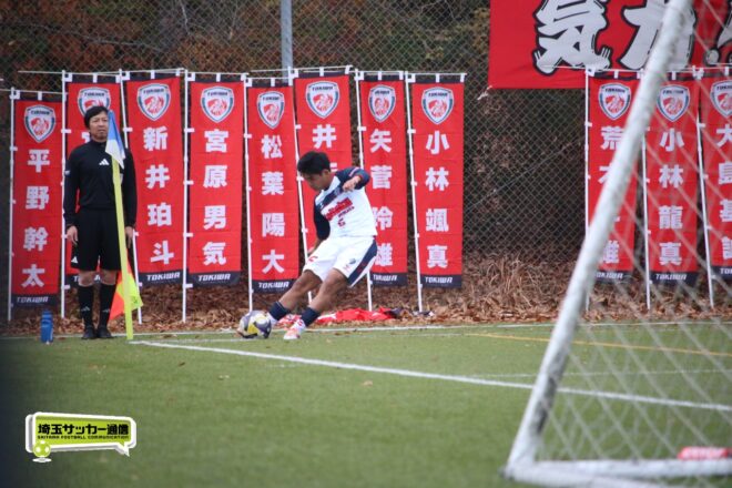 守備ではDF横山大平(3年)がこの日も跳ね返しの部分で強さを発揮し、DF今井葵大(3年)、GK本田一朗(3年)とともに後半も堅守を継続。「相手のトップの選手がヘディングが強いので、そこのやり合いでとにかく負けないこと。負けるにしてもカバーリングをちゃんとつかせて、跳ね返したらセカンドボールっていうのを徹底できていたかなと思う」と為谷監督も振り返った成徳深谷が1-0で勝利。初のプリンス参入戦となった中で“凡事”で上回り、初勝利を飾った。