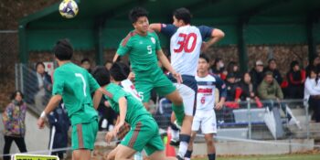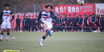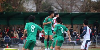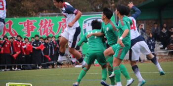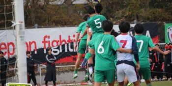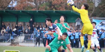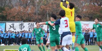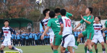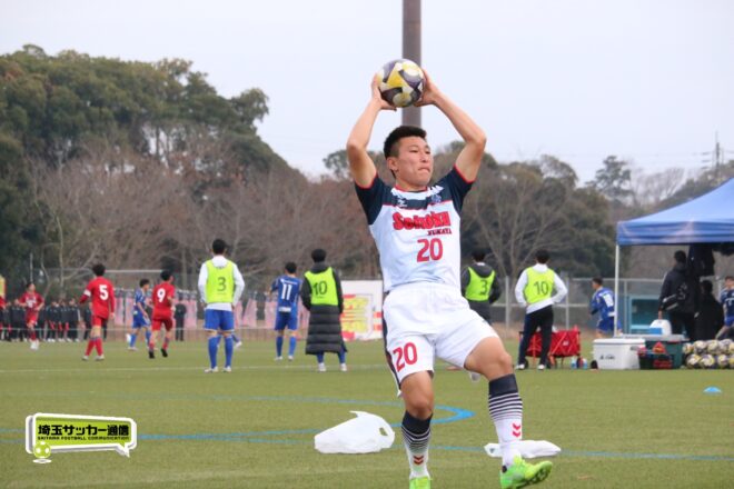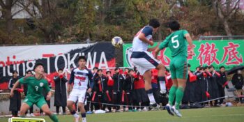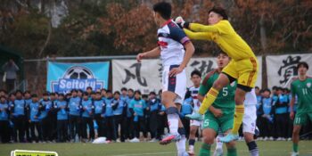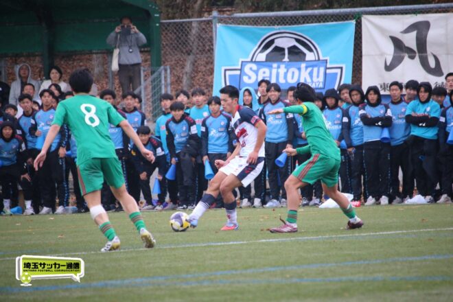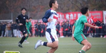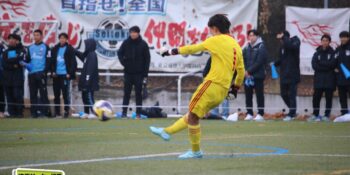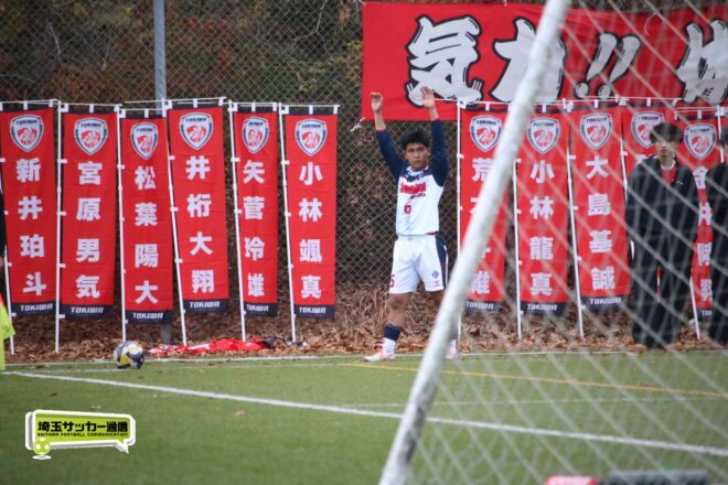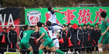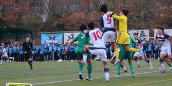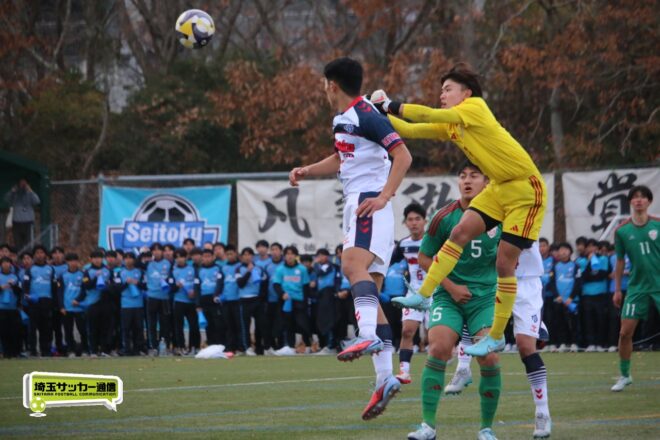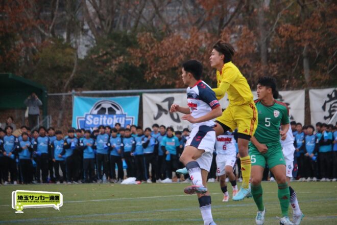 すると前半35分、成徳深谷は敵陣右サイドでスローインを獲得。今年も1年間相手にとって脅威となっていたDF山谷康太朗(3年)のロングスローから頓宮が競り勝ってすらすと、裏のスペースに走り込んだDF菅井陽斗(3年)が身体を捻りながら、ヘディングで決めて先制した。