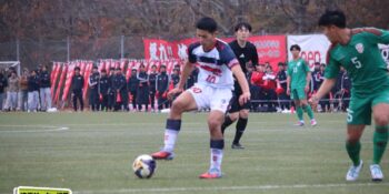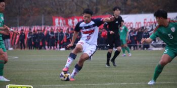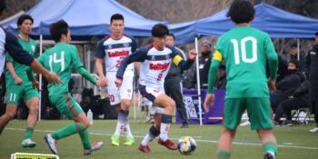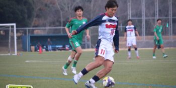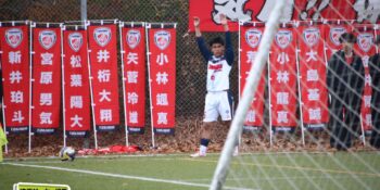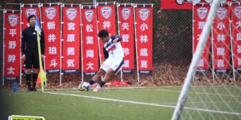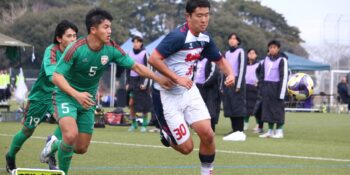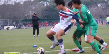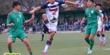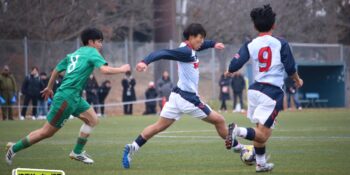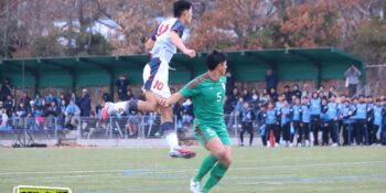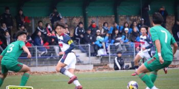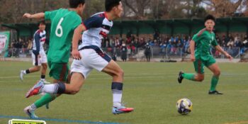 後半は頓宮に代えて、10番FW関根大和(3年)を投入。6分にはゴールキックからの展開から右サイドで連携して崩し、菅井のクロスに関根が頭で合わせる。また、川上が前半に続いてゴールに向かう迫力を見せ、31分にはカットインから1人2人と交わして左足シュートで迫った。