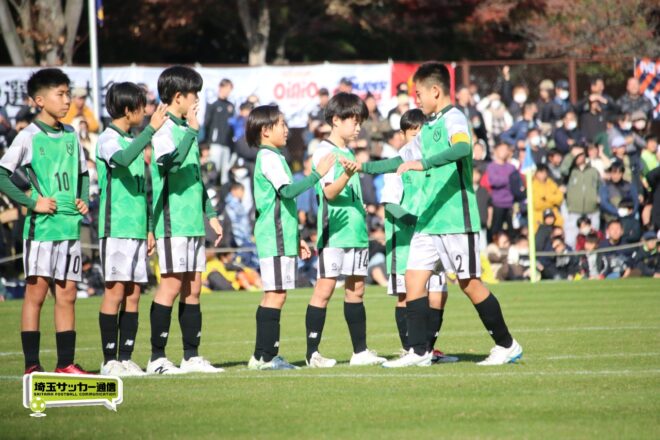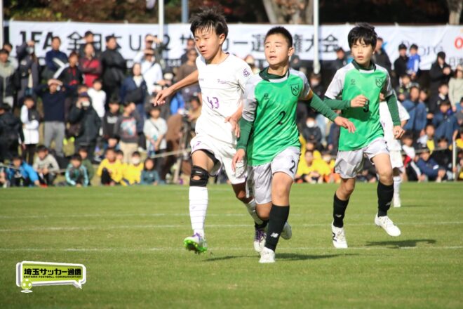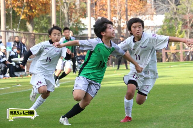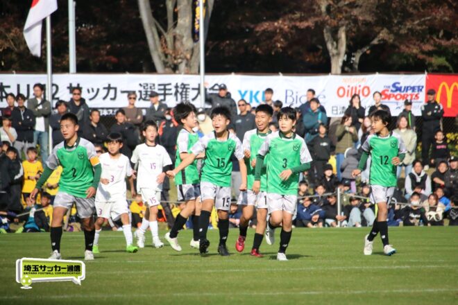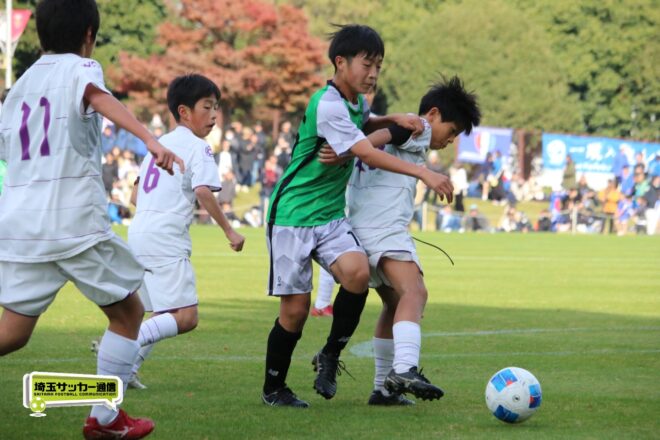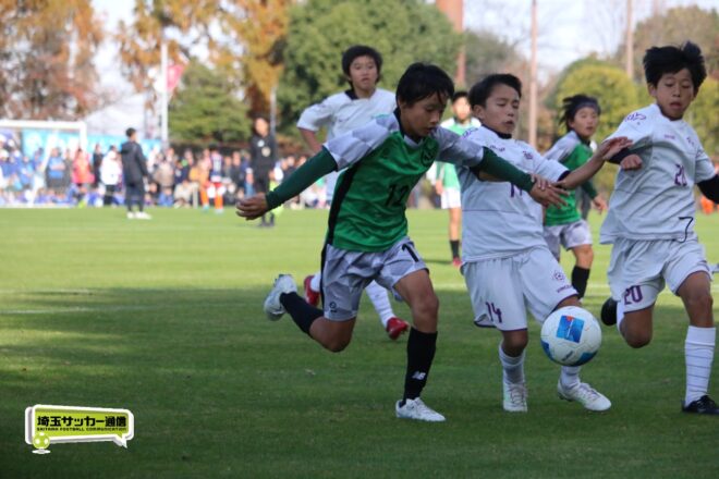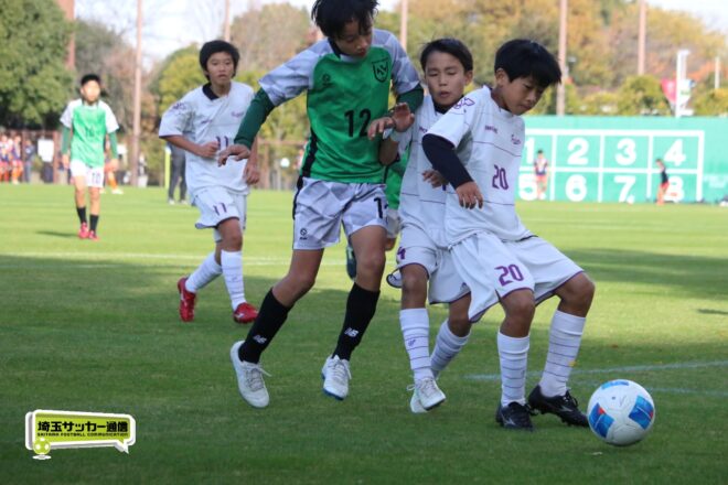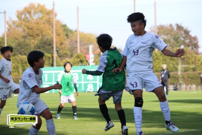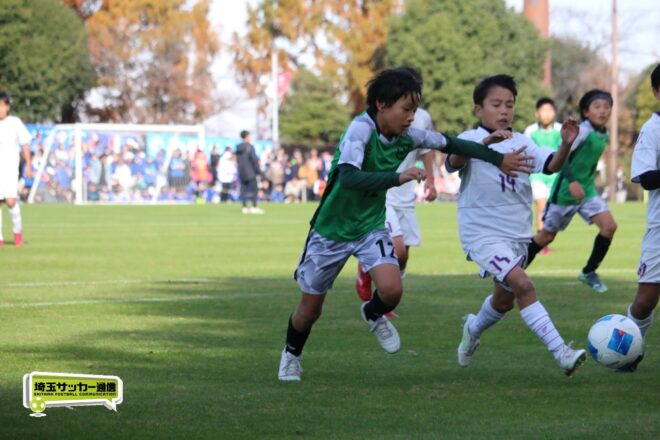 JFA第49回全日本U-12サッカー選手権大会の3位決定戦が11月24日に埼玉スタジアム第3グラウンドで行われ、新座片山フットボールクラブ少年団とSUGITO UNITED FOOTBALL CLUBが対戦。0-2から後半に追いついた新座片山FC少年団がPK戦を制し3位となった。
