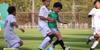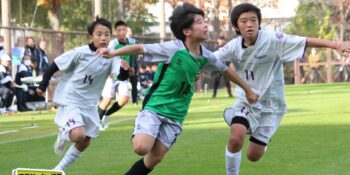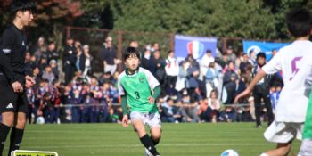 SUGITOは前半17分、渡辺一都(6年)のパスから10番宮坂琉斗(6年)がゴール左隅に決めて先制すると、19分には宮坂が今度は左足のFKを直接ゴールに蹴り込んでリードを広げた。