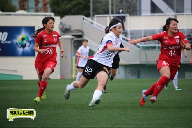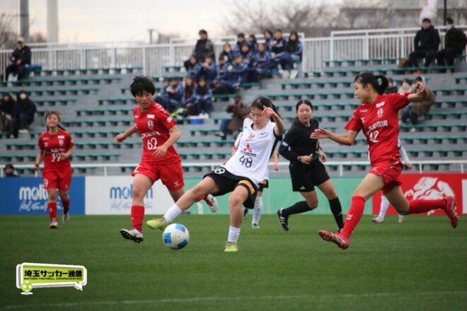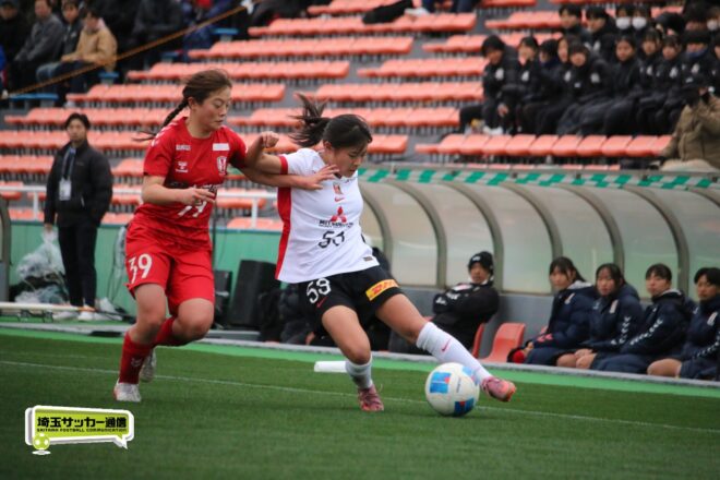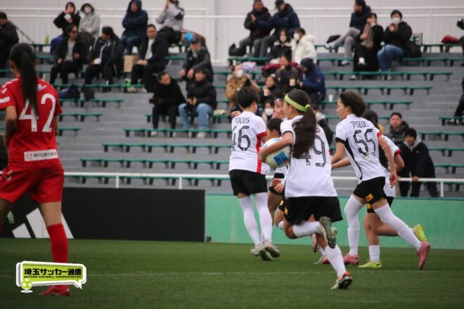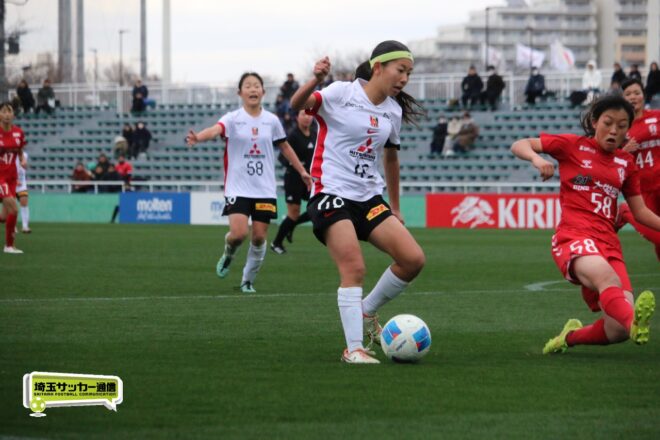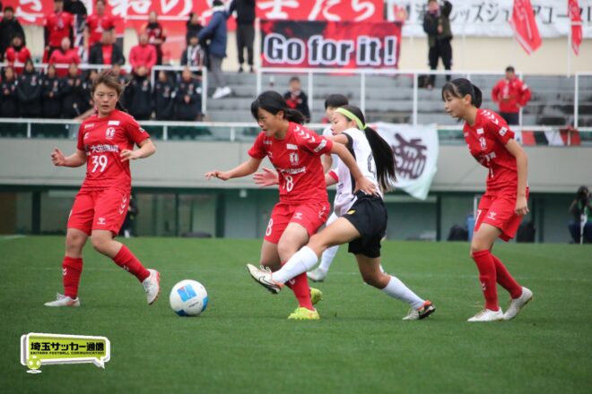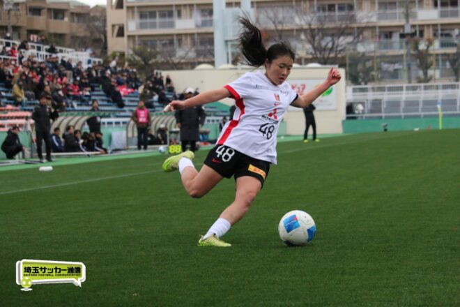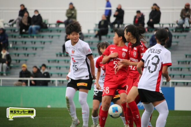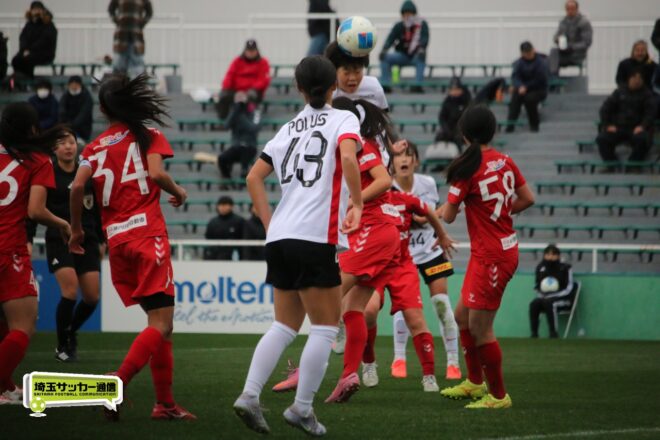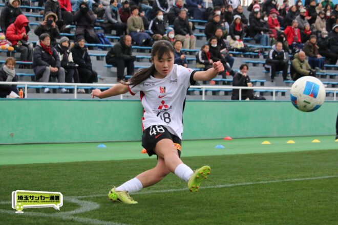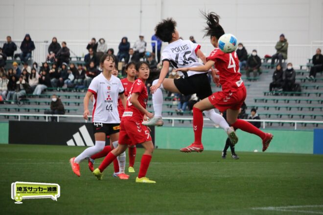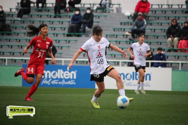 先に失点した浦和だが、チームとして粘り強く守りながら、ダブル主将を務めるDF岡本遥花やMF諏訪楓(ともに3年)が身体を投げ出して相手のシュートをブロックし連続失点は許さない。
