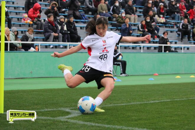 中盤は足が止まってきた相手に対し、浦和は運動量を落とさずプレー。また、シンガポール遠征やアメリカで行われた世界大会・ナイキカップで世界の球際の強さを実感し、「そのあたりは日頃から意識しているんですけど、彼女たちが体験したことによってそういう意識を強く持ってだいぶ変わりました」というチームは球際や切り替えの速さでも上回り相手を押し込んでいく。