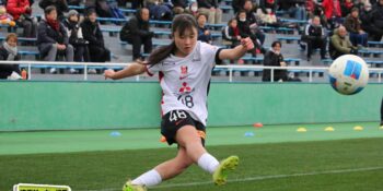 後半はボランチの河合萌花(2年)や片岡、仙石が絡み合いながら、ワンタッチパスを交えモビリティを出してアタック。そのうえで左サイドの増田が起点を作りながらチャンスを創出する。