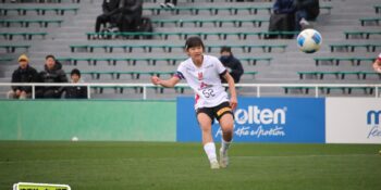 38分には右サイドのMF浅野伶央(2年)が仕掛け、クロスに逆サイドの増田がヘディングで狙うが、わずかにゴール左に外れてしまう。HT前の40分には神戸のミドルシュートが枠を捉えたが、ここはGK秋本悠眞(3年)が好反応を見せ、上に弾き出して最少失点で折り返した。