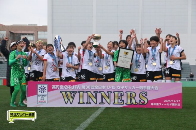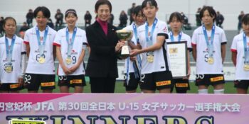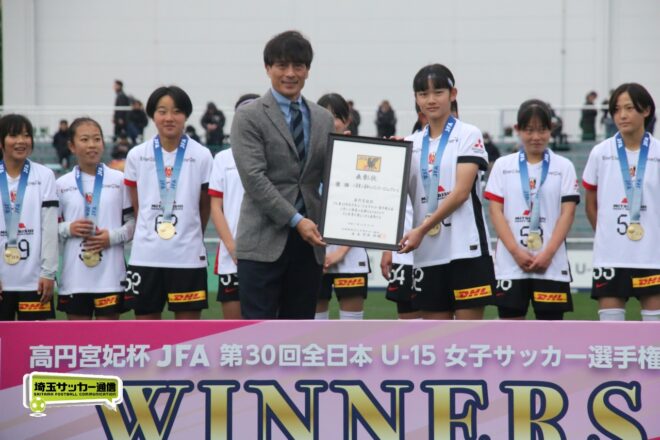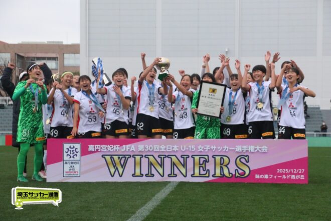全国決勝で見事リベンジ達成! 高円宮妃杯 JFA 第30回全日本U-15女子サッカー選手権大会決勝が27日に行われ、昨年準優勝の三菱重工浦和レッズレディースジュニアユースがINAC神戸テゼーロに2-1で逆転勝ち。2019年大会以来となる、6年ぶり8度目の日本一に輝いた。