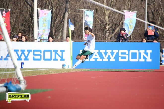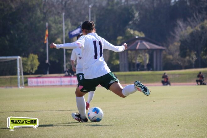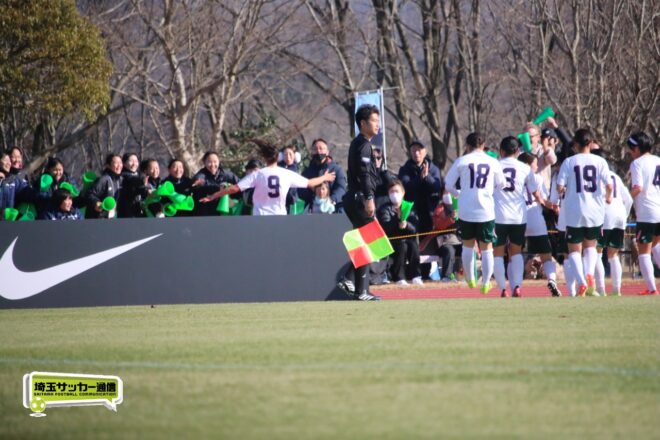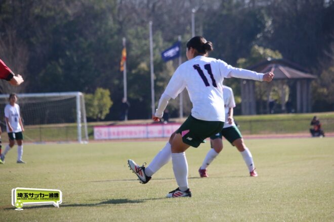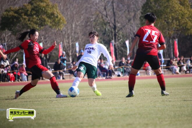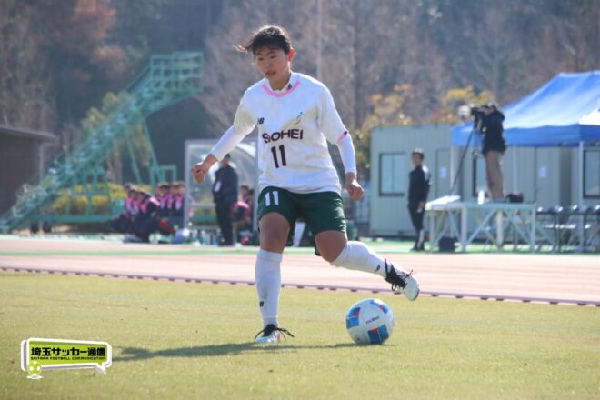 昌平はHTに2枚替え。FW西脇優(3年)を投入し、前線のポイントを増やしてさらに攻撃の活性化を図る。後半14分の鈴木志のミドルシュートはキーパーの手を弾きながらクロスバーを叩いたが、その2分後に追加点が生まれた。中盤で小室からボールを預かった西脇がひとつ運び出すと右足を強振。これが右隅のコースに突き刺さるゴラッソとなってリードをさらに広げた。