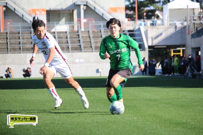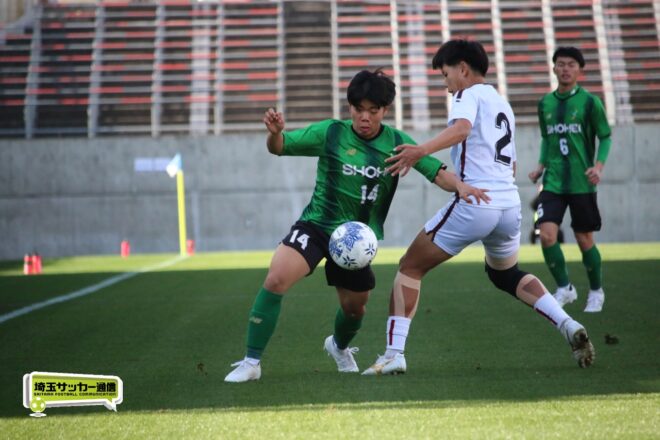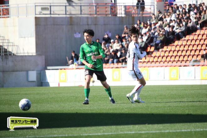 その後も昌平は長、山口が絡み合いながら攻撃を牽引。36分にはMF工藤敦士(2年)の浮き球パスに抜け出した山口が落とし、MF飯島碧大(3年)が蹴り込んでリードを3点と広げた。
