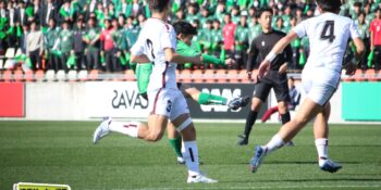 となれば今度は川崎フロンターレ内定のMF長璃喜(3年)だ。「入りがよくなかった中で豪太が決めてくれて、自分もゴールに積極的になった」。マンツーマンでついてくる相手に対し、「今日は足下より裏を抜けようっていうのを豪太と話していた」。17分、山口のスルーパスを裏のスペースで呼び込むと、前に出たキーパーを交わして前進。深い切り返しから右足で叩き込んだ。