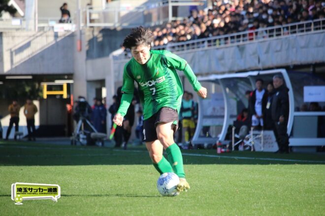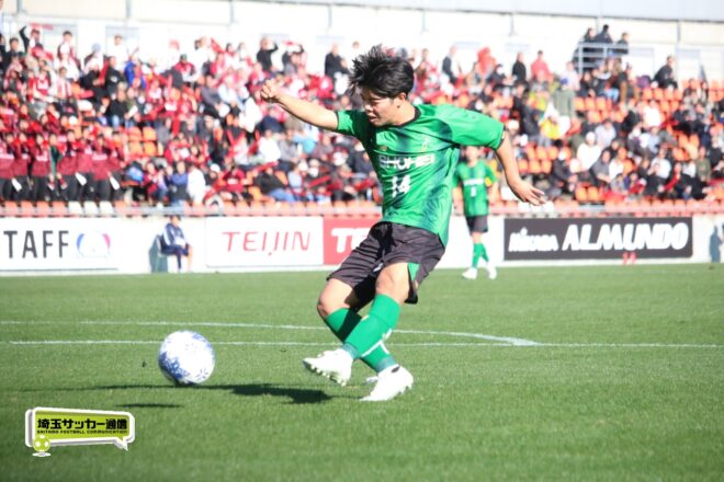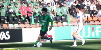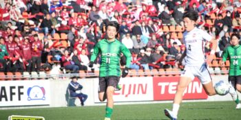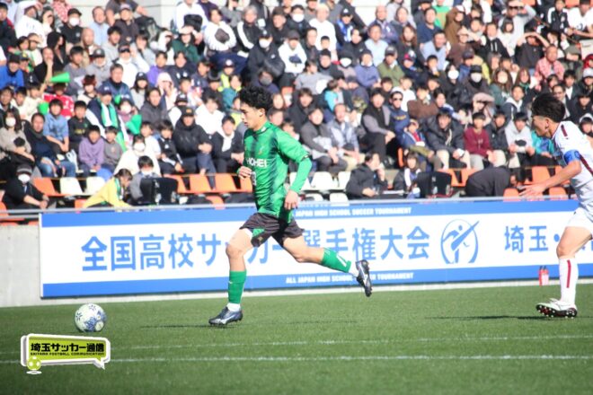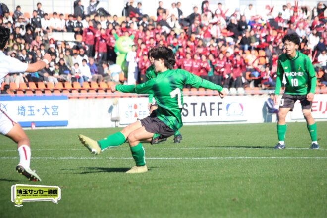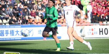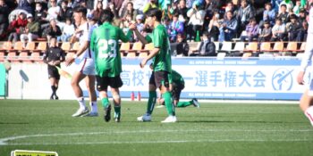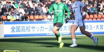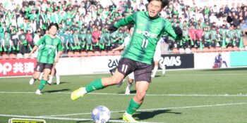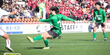 J内定のWエースが躍動した。前半7分、MF飯島碧大(2年)の浮き球のパスに抜け出した湘南ベルマーレ内定の10番MF山口豪太(3年)はドリブルで持ち出すと、「入りなので、1発流れを掴むためにも振った」。完璧な軌道を描いたシュートがゴールに吸い込まれ、先制した。