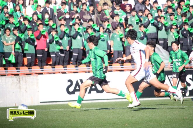後半もディフェンスラインからのロングフィードに飯島が、長の浮き球のパスから山口が積極的に抜け出しの形を狙った。10分には中盤でボールを収めたU-16日本代表FW立野京弥(1年)がドリブルを開始。相手DFを次々に交わしてペナルティエリア内に侵入すると、こぼれ球の混戦に対し、長、立野が次々とシュート。3度目の跳ね返りを長が沈めて4-0で勝利した。