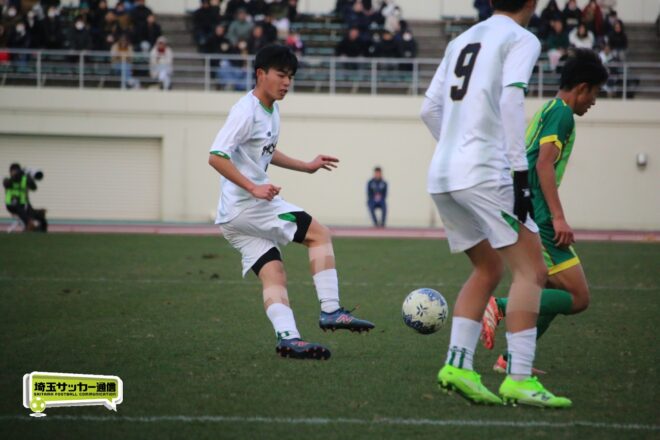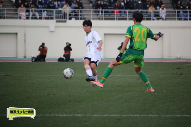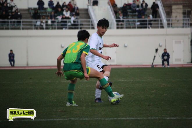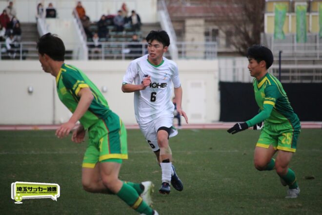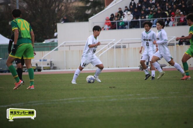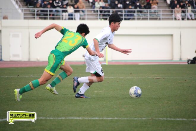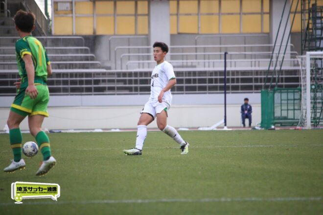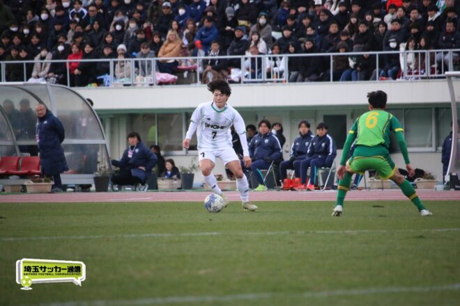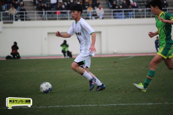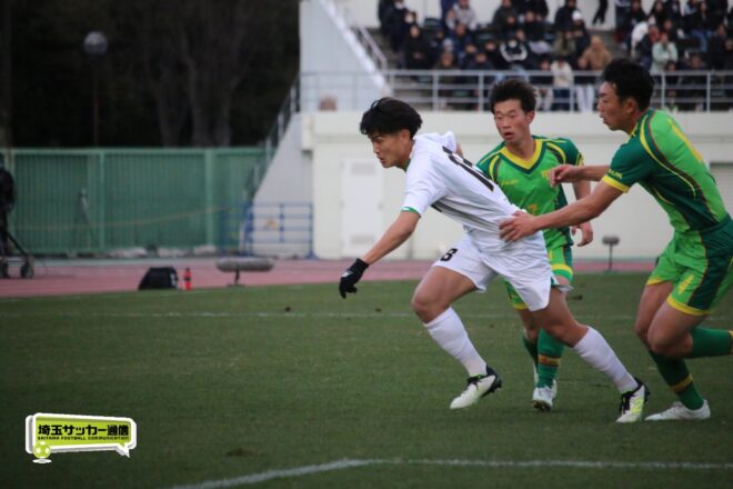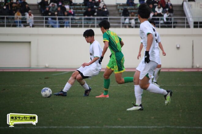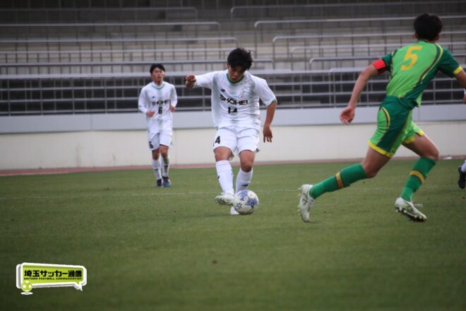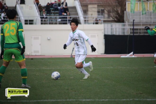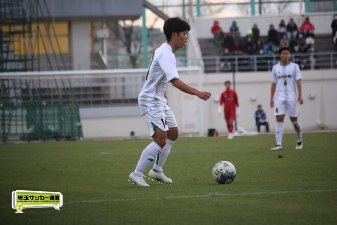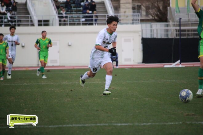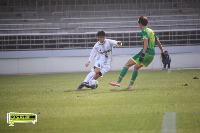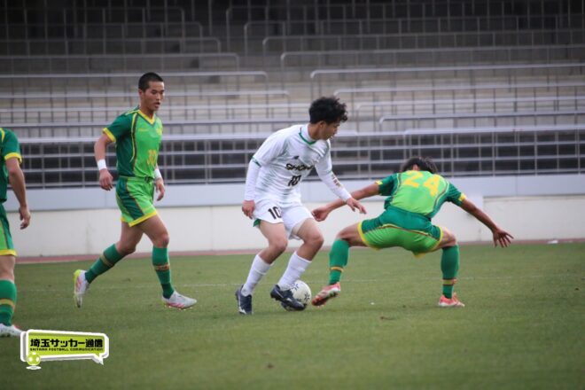 2分、ボールを繋ぎながらギャップを作り、MF工藤敦士(2年)の浮き球のスルーパスのこぼれを山口がダイレクトシュート。さらに11分にはMF人見大地(2年)、23分にはFW齋藤結斗(3年)と攻撃のカードを切って打開にかかる。31分には齋藤のボールカットから長が長い距離を運び出して狙い、39分にはDF伊藤隆寛(3年)主将を起点に、途中出場のFW島田大雅(2年)、齋藤と細かく繋いで人見がエリア内に抜け出しを図るが、シュートまでは至らない。