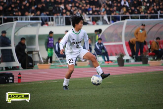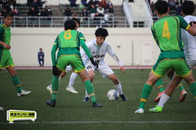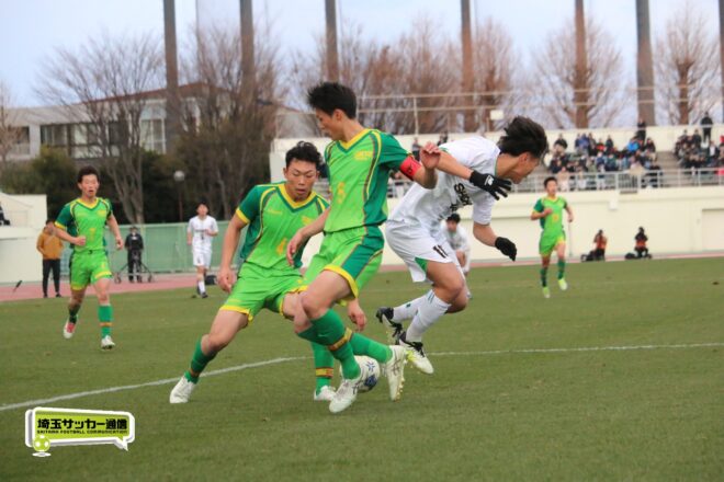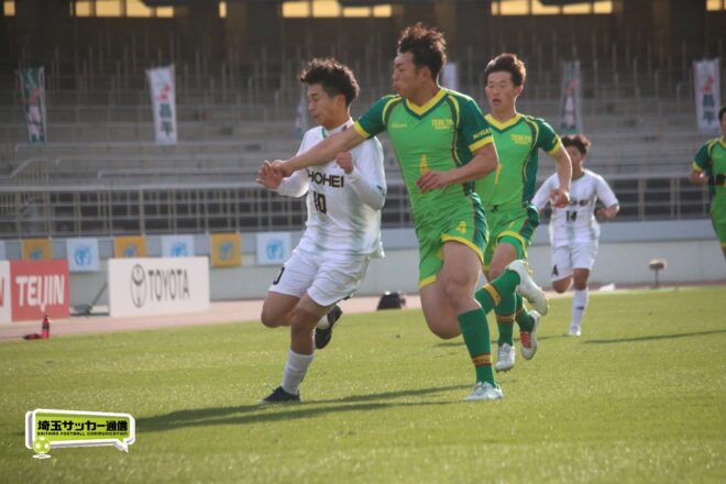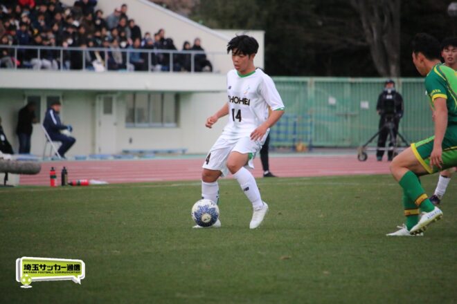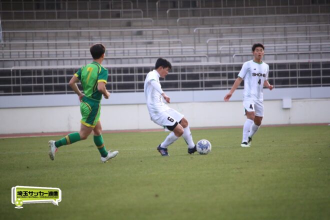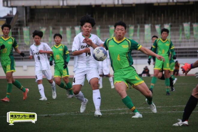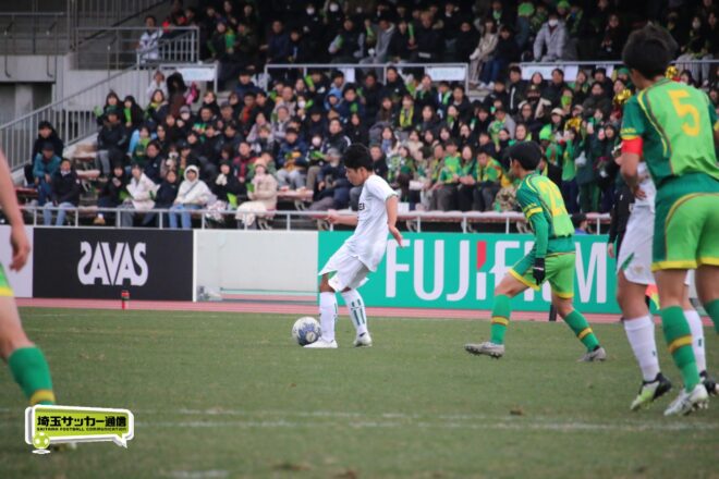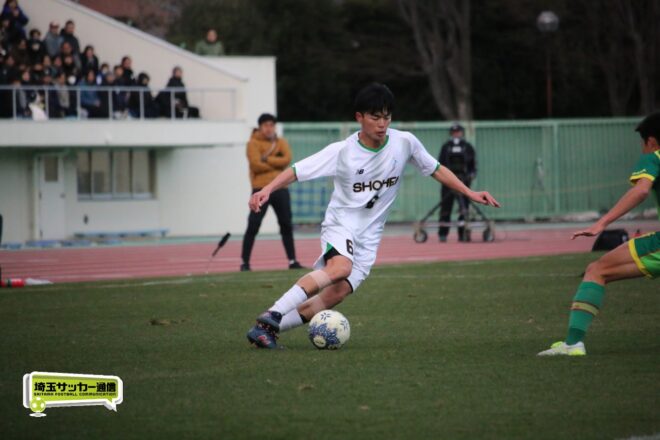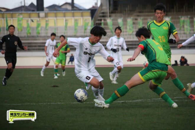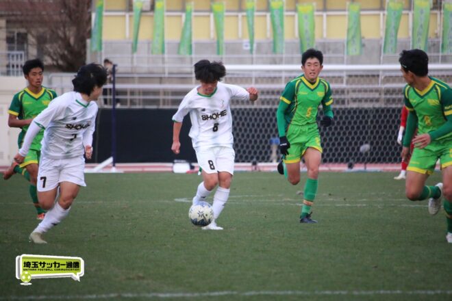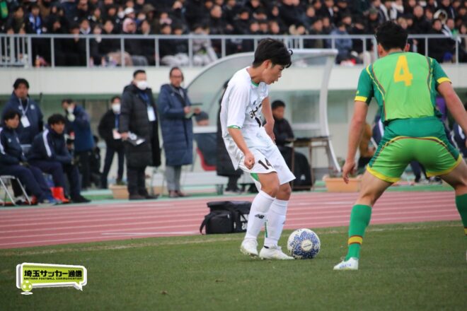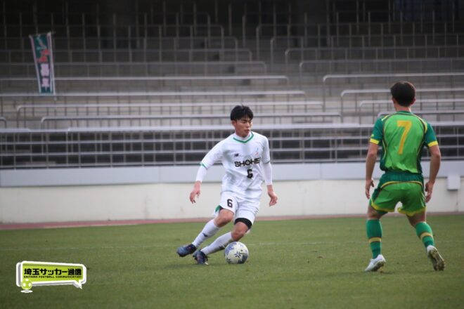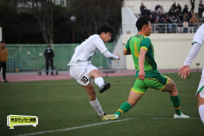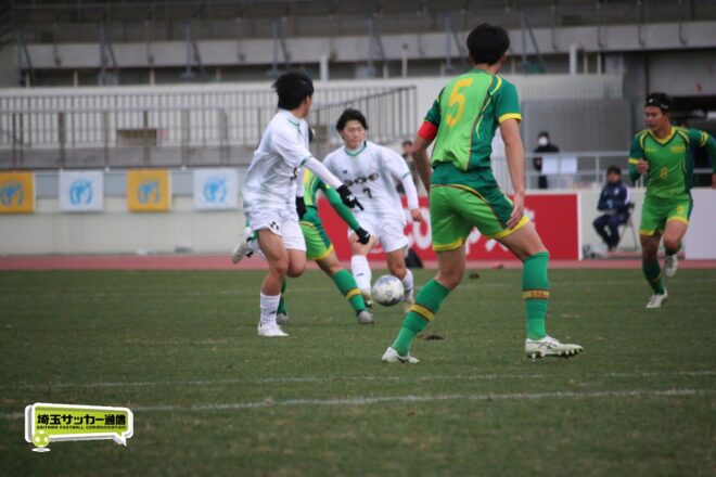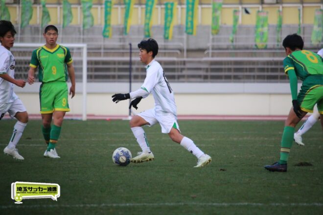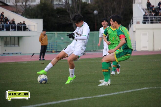 2分、ボールを繋ぎながらギャップを作り、MF工藤敦士(2年)の浮き球のスルーパスのこぼれを山口がダイレクトシュート。さらに11分にはMF人見大地(2年)、23分にはFW齋藤結斗(3年)と攻撃のカードを切って打開にかかる。31分には齋藤のボールカットから長が長い距離を運び出して狙い、39分にはDF伊藤隆寛(3年)主将を起点に、途中出場のFW島田大雅(2年)、齋藤と細かく繋いで人見がエリア内に抜け出しを図るが、シュートまでは至らない。