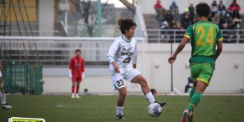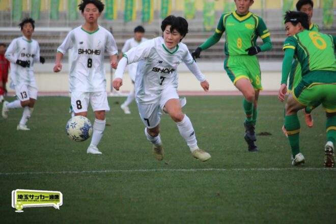30分、山口が中盤からドリブルで持ち出し、U-16日本代表FW立野京弥(1年)が放ったシュートが昌平のファーストシュート。33分には山口を起点に、左SBの古川雄規(1年)がアーリークロスを供給し、立野が滑り込んだが、あと一歩合わない。HT前の41分にはMF飯島碧大(2年)の右クロスに、山口がダイビングヘッドで合わせたが、惜しくも枠を捉えきれなかった。