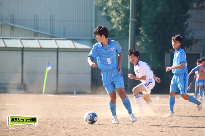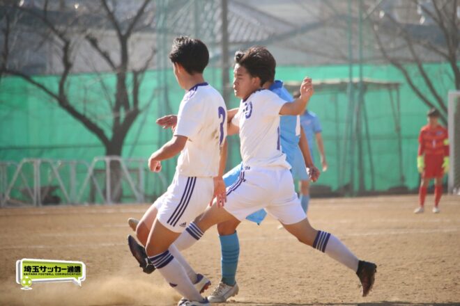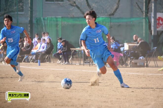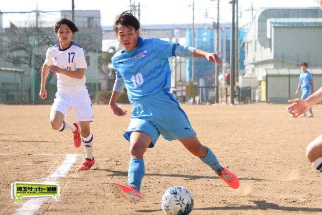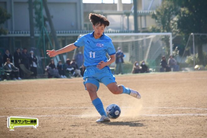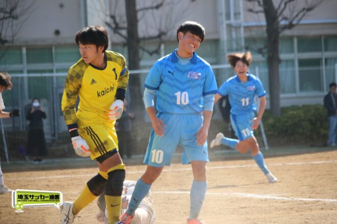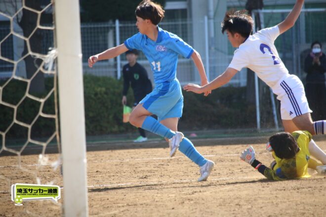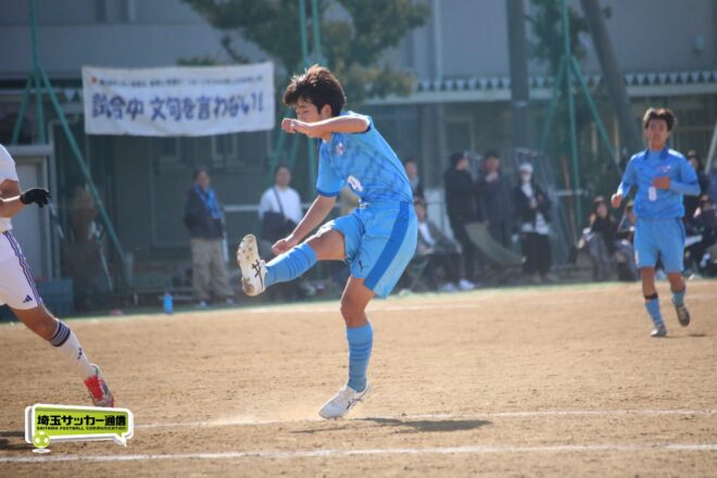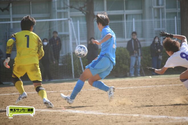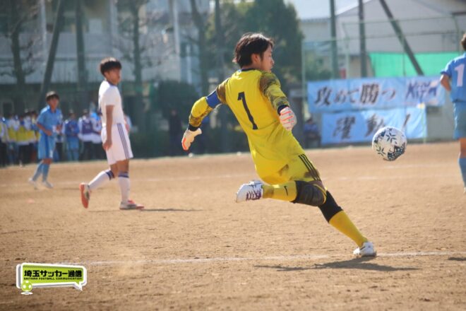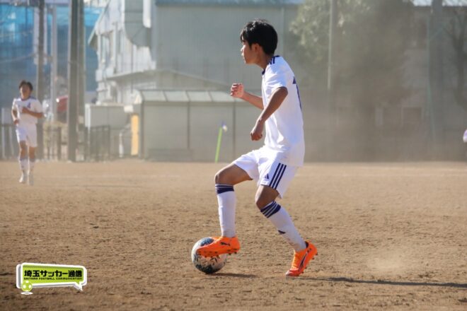 川口北は後半もメンバーを入れ替えながらゴールに迫り、25分にMF石川侑人(2年)が、30分にはFW鶴田悠真(2年)が決めるなど途中出場組も結果。37分には井出が中盤でのパスカットから前進。「後半で自分もパスミスが続いていたので、それを取り返そうっていう気持ちだった」。鶴田のパスに抜け出すと右足で思い切りネットを打ち抜いて、ゴールラッシュを締めた。