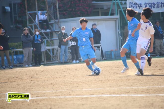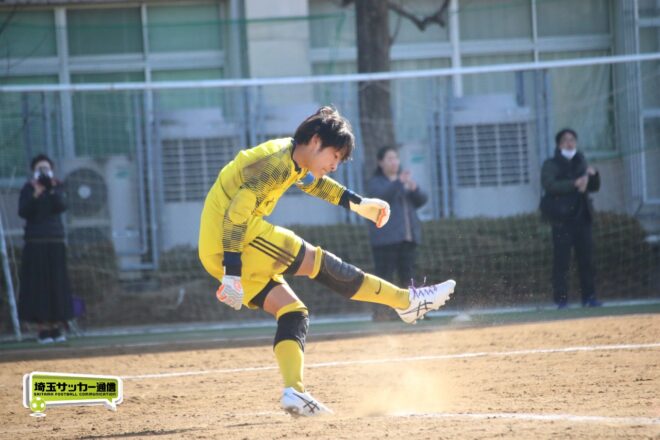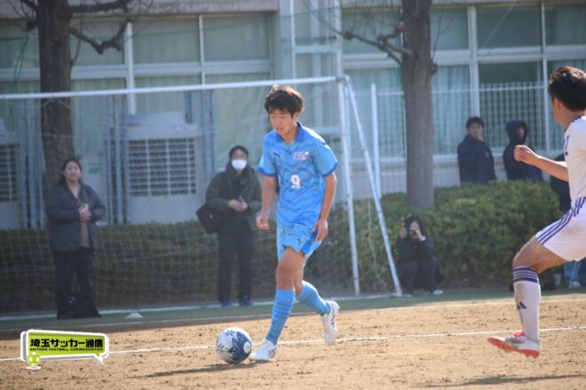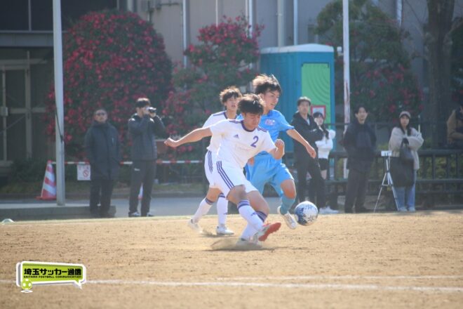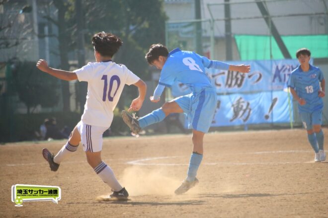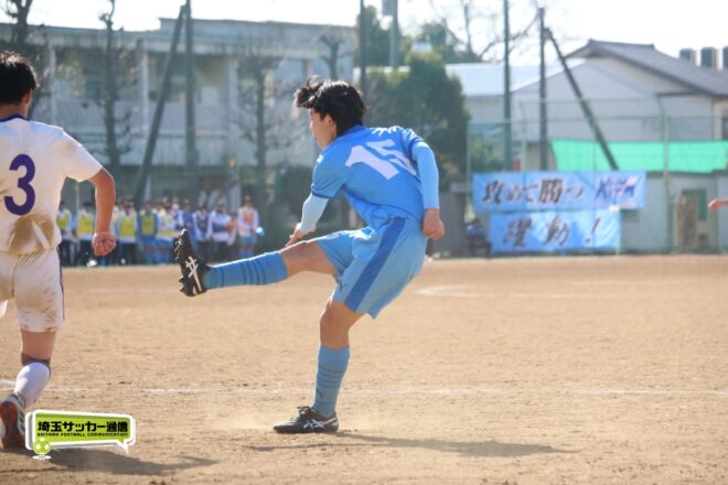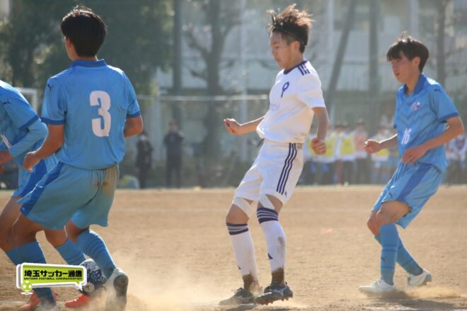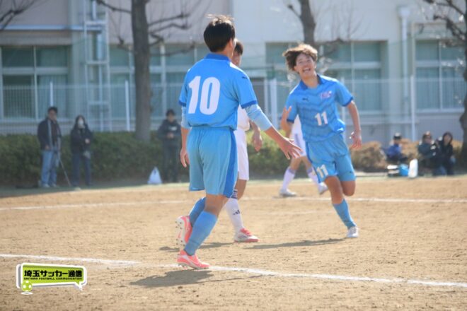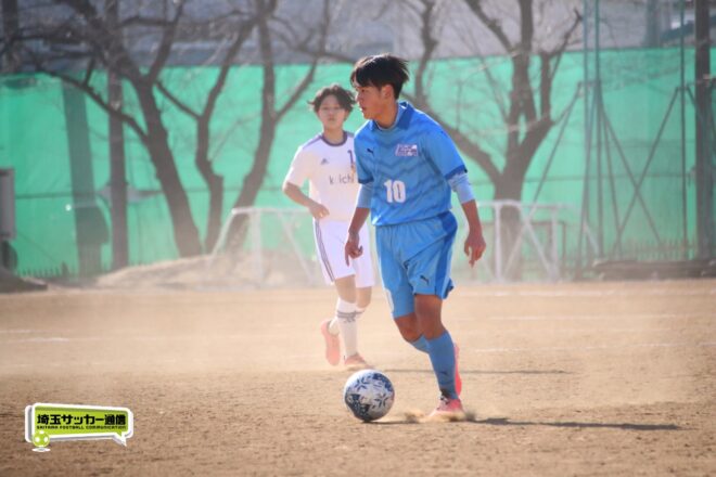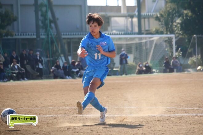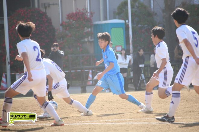 川口北は後半もメンバーを入れ替えながらゴールに迫り、25分にMF石川侑人(2年)が、30分にはFW鶴田悠真(2年)が決めるなど途中出場組も結果。37分には井出が中盤でのパスカットから前進。「後半で自分もパスミスが続いていたので、それを取り返そうっていう気持ちだった」。鶴田のパスに抜け出すと右足で思い切りネットを打ち抜いて、ゴールラッシュを締めた。