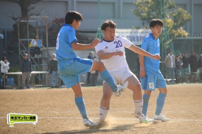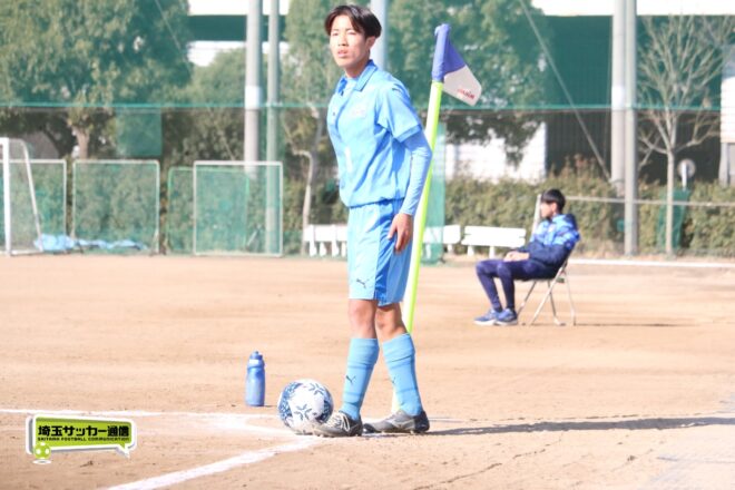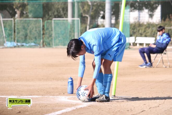 セットプレーでは180cm超えの長身DF井出岳大(2年)が強さを発揮。MF燕良汰(2年)も左サイドで効果的なプレーを見せる。前半終了間際の37分には中盤で受けての持ち出すプレーを得意とする沢田がパス交換しながらゴール前に入り、ミドルシュートで迫る場面もあった。