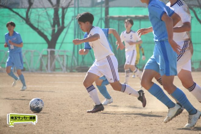 「攻めて、勝つ」を掲げる川口北が快勝した。序盤から川口北はFW及川祐輔(2年)、10番FW沢田郁仁(2年)、FW島田和輝(1年)の3枚がゴールへの意識高くアタックを仕掛けていく。