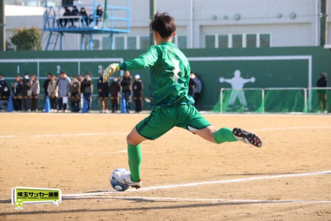 大宮東は相手コートで進めながらも、最後の部分で堅守を崩しきることができずに苦戦。得点を取ることができなかったが、「ハーフタイムで攻め方とかやることを徹底することを話した」(佐藤輝翼主将)。「大きく入る」プレーやロングスローやコーナーキックなどのセットプレー、また外を警戒してくる相手に対し1つ早いタイミングでクロスを上げることを徹底してプレーする。