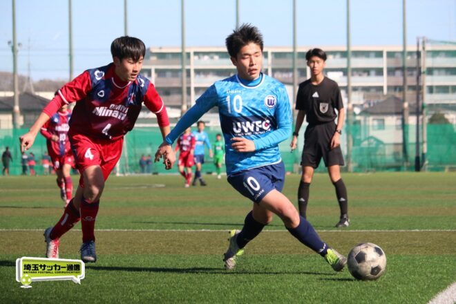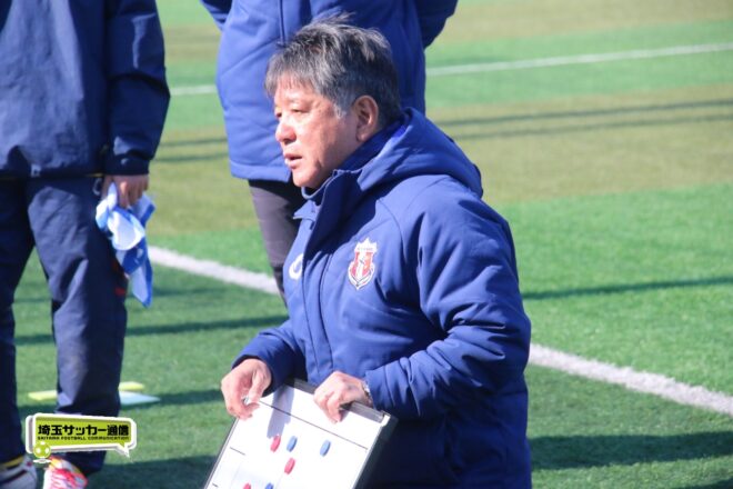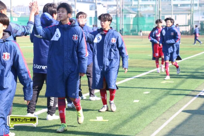 その後も浦和西は10番MF五十嵐新(2年)が前線でタメを作り、25分には五十嵐の左クロスに途中出場のMF高野優翔(2年)が合わせたシュートは惜しくも枠外だったがゴールに迫る。追加点は生まれなかったが、後半はゲームの流れを掌握した浦和西が2-0で勝利。多田鉄平監督は「前半はちょっと元気がなかったんですけども、ベンチの選手、スタッフもそうですし、みんな一丸で声を掛け合って、後半40分間戦えたっていうところが大きい」と試合を振り返った。
