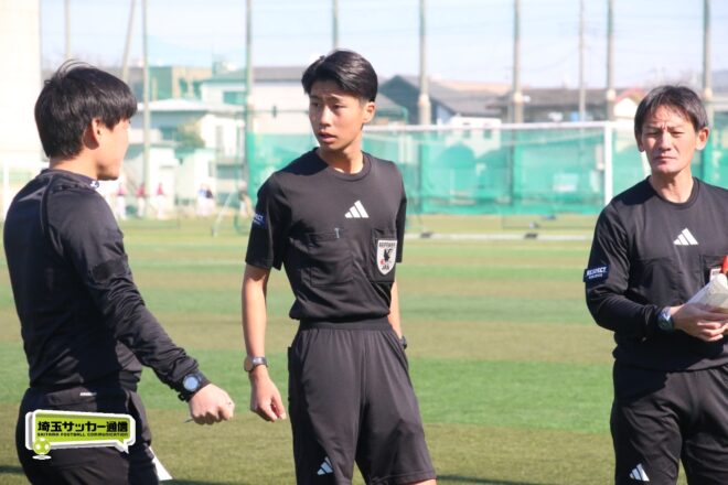 2024年に支部制覇を果たした浦和西と、2025年覇者で今大会は3回戦で優勝候補の浦和南を破って勝ち上がった大宮南の一戦となったファイナル。主審は現役高校生としては史上初めて全国高校サッカー選手権で試合を担当したユースレフェリーの酒井星南(3年/与野)が務めた。