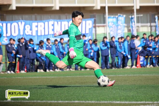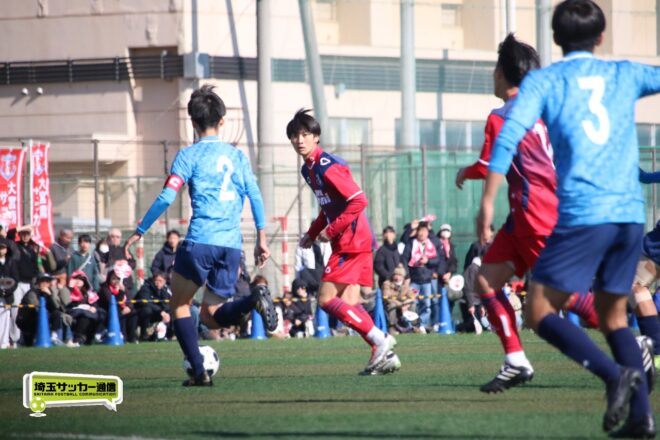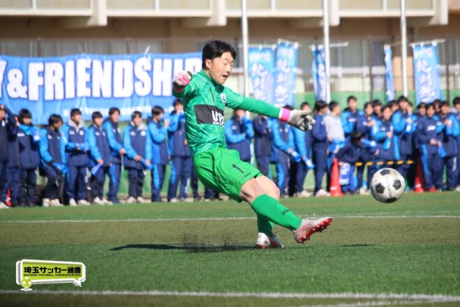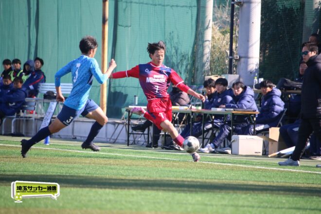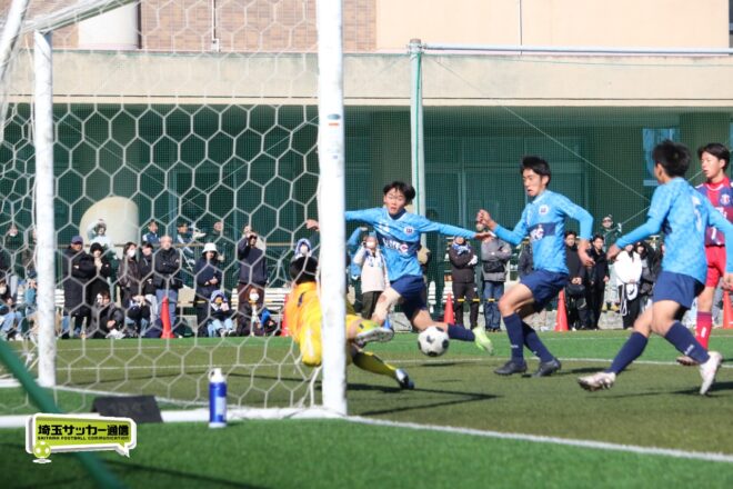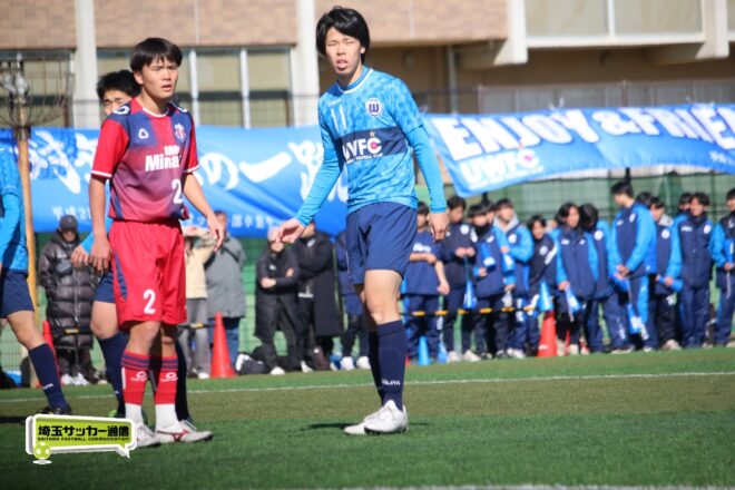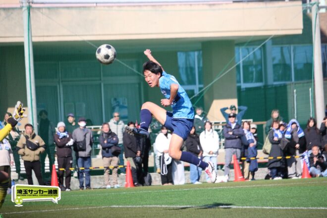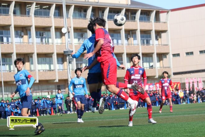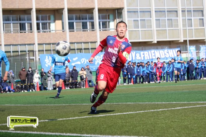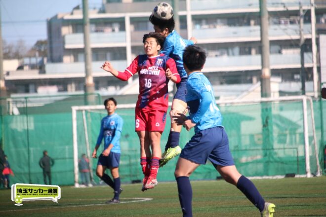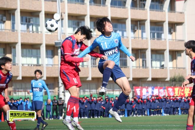 浦和西は末岡が得意のコーナー付近からの1対1で相手DFを外してエリア内に侵入するプレー。16分には長身のFW篠原玄太朗(2年)を投入する。すると直後、MF後藤有輝(2年)のロングスローを篠原がヘディングで後方にすらし、DF大塚温月(2年)が詰めて追加点とした。
