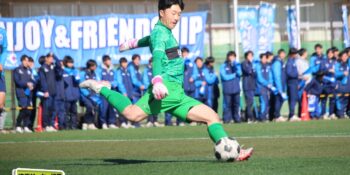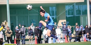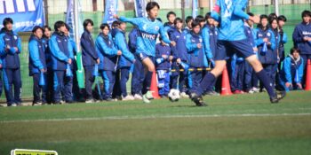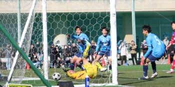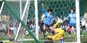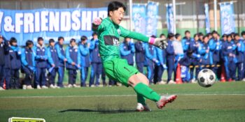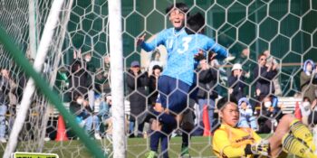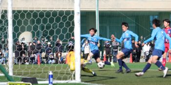 すると後半8分、左ショートコーナーから末岡がエリア内に潜り込んでクロス。こぼれ球にDF栗原由翔(2年)が足を伸ばして詰めた。栗原は右WBながら今大会は準決勝の市立浦和戦の決勝弾を含む3ゴール。「セットプレーの練習とかでは詰めるのを意識している。みんなからはラッキーボーイって言われているんですけど、実力って言いたいですね(笑)」と笑顔を見せた。