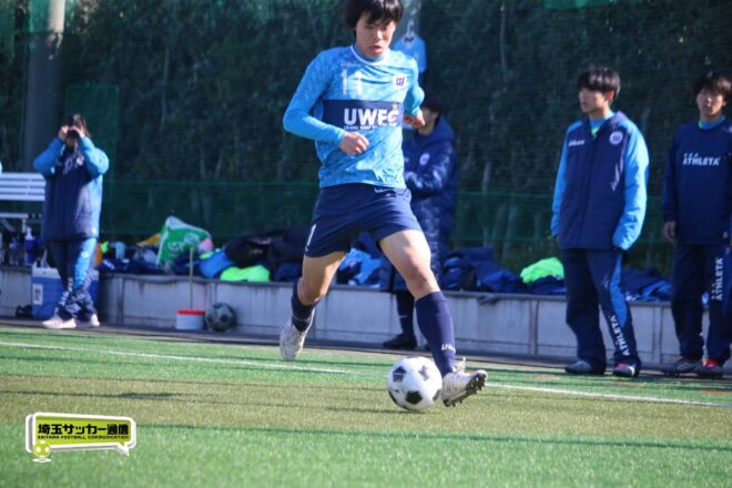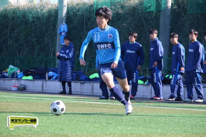 浦和西はMF古谷倫(2年)が前半2分にカットインから仕掛けてファーストチャンス。中盤では今年のチームのキーマンとして期待されるMF末岡芽生(2年)を中心に組み立てを図る。