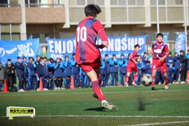 準決勝の市立浦和戦もセットプレーからの決勝ゴールだった中で、この日も得意のパターンから2得点。末岡は「セットプレーっていうのが結構うちは得点源になってて。そこで通用するんだなっていうのがしっかり確認できたので、県大会ではそれをもっと生かせるように、それ以外でも点を取るっていうのも目的なんですけど、それも強みにして勝ちたいと思います」と話す。