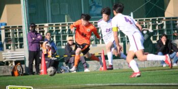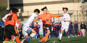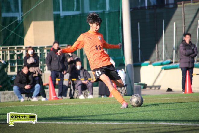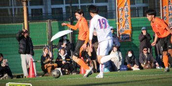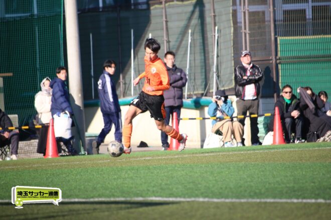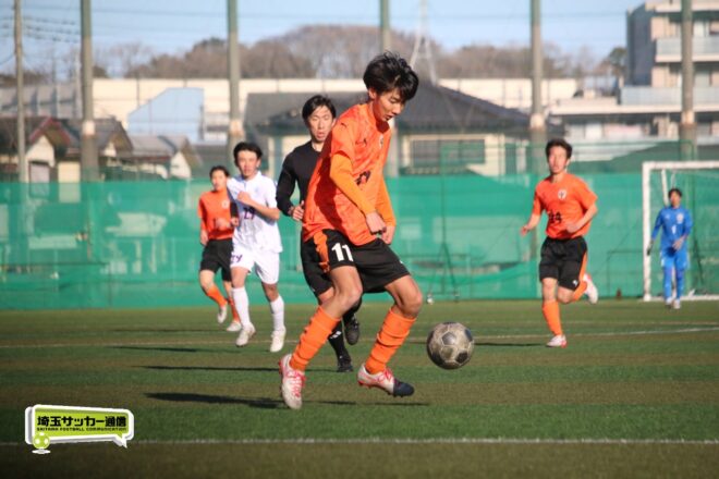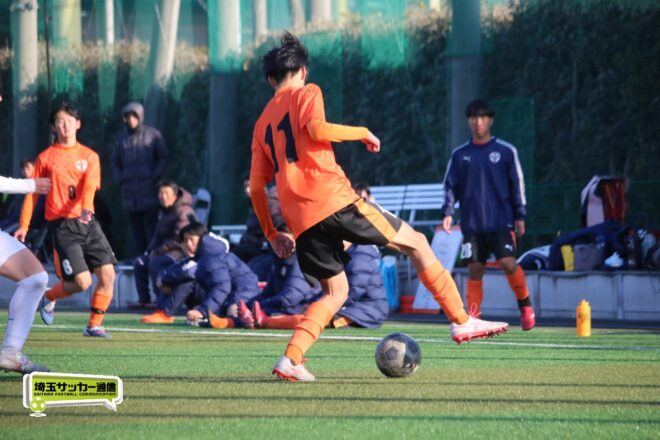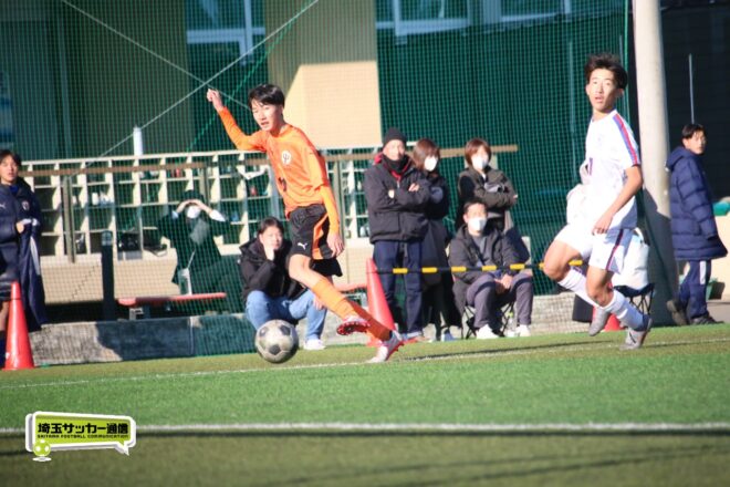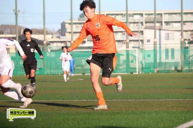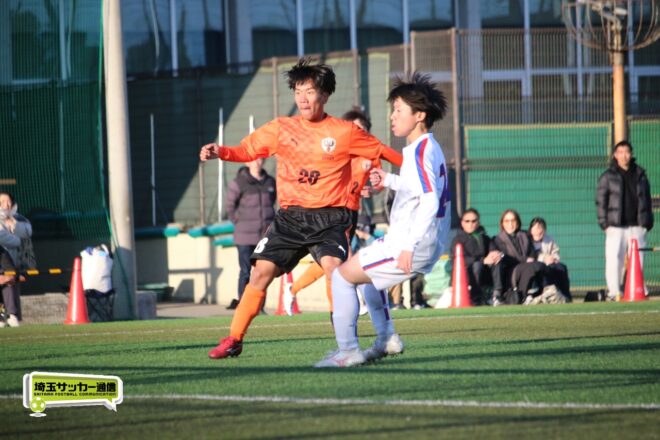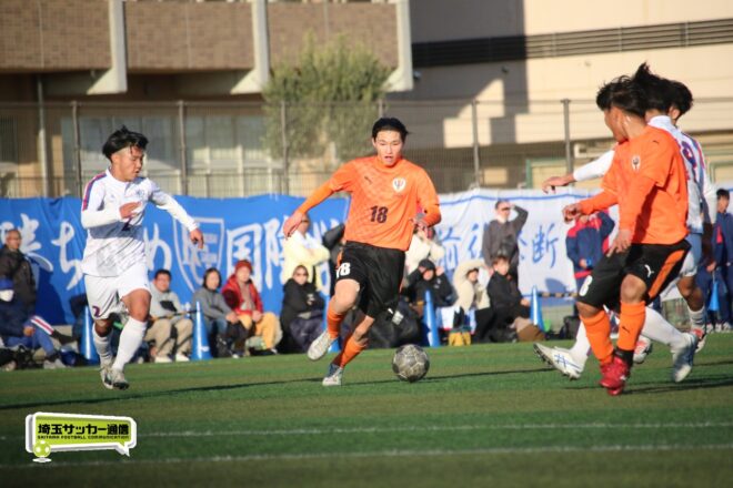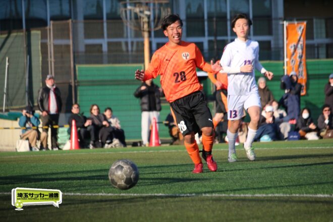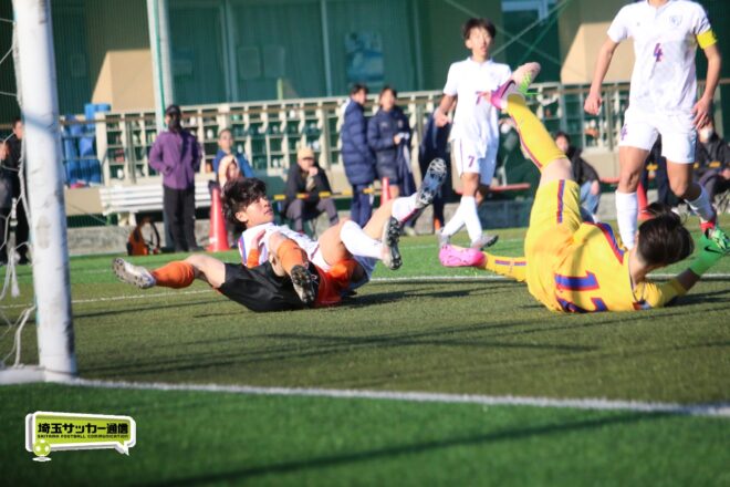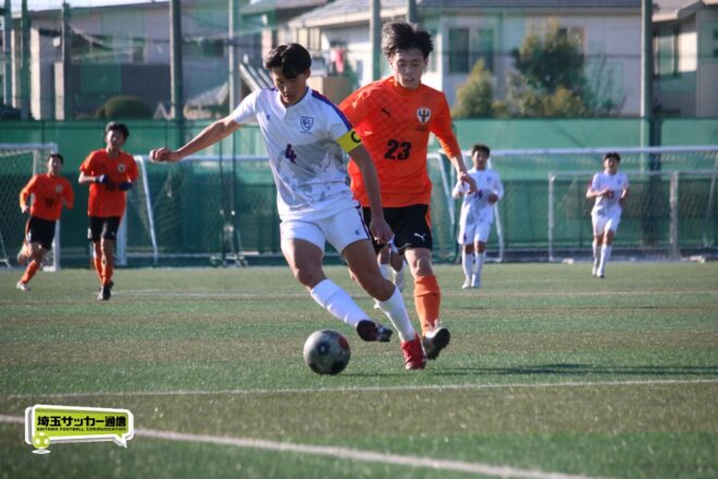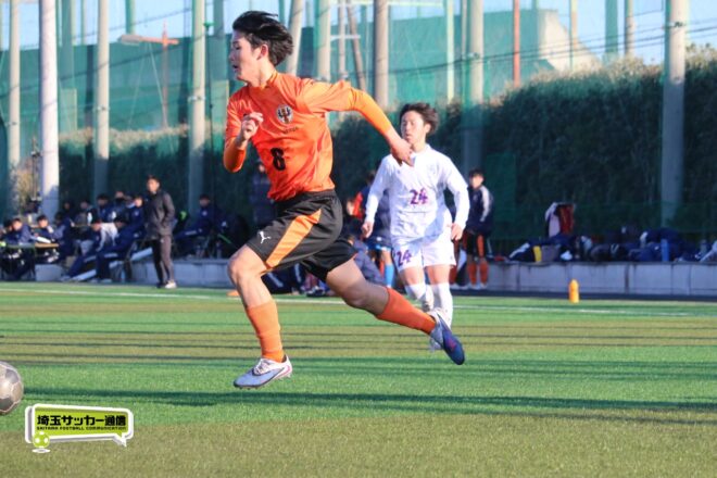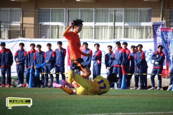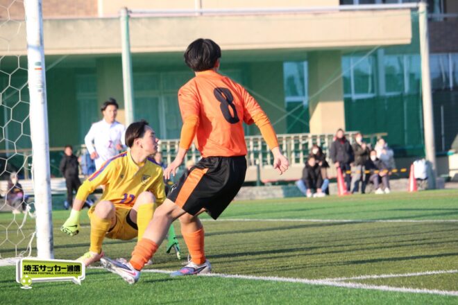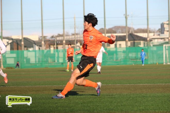 5分、中沢の右CKからファーサイドで福谷がヘディングで狙ったが、シュートは惜しくも枠を捉えきれず。18分には後半から出場のMF秋田大翔(1年)のパスに右シャドーの田畑慶多(2年)が抜け出し、切り返しから狙ったが、国際学院GK中野りき(1年)が好セーブを見せる。