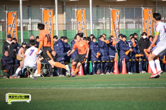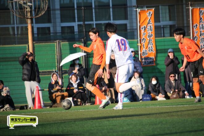前日の準決勝から大きく構成を入れ替えた市立浦和は前半、ビルドアップの部分で相手に引っかけてロストする場面もあったが、後半はしっかりとボールを繋ぎながら相手を押し込んだ。