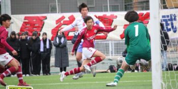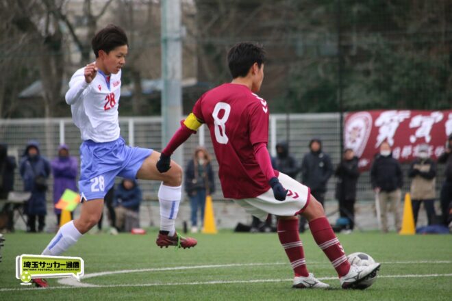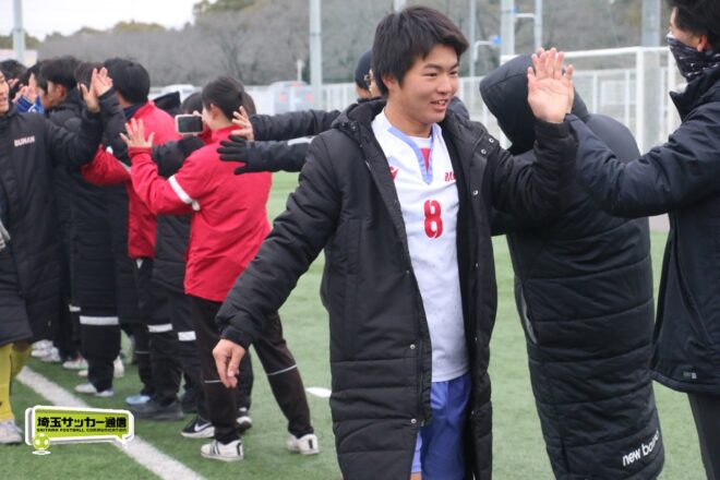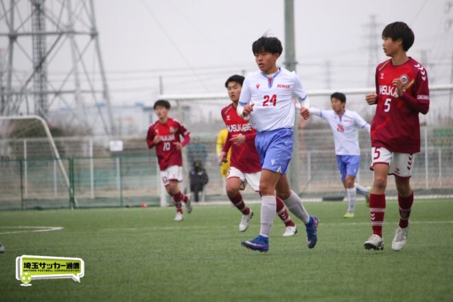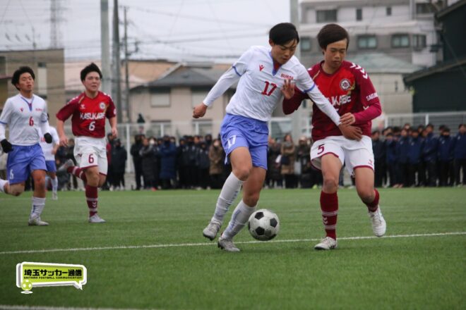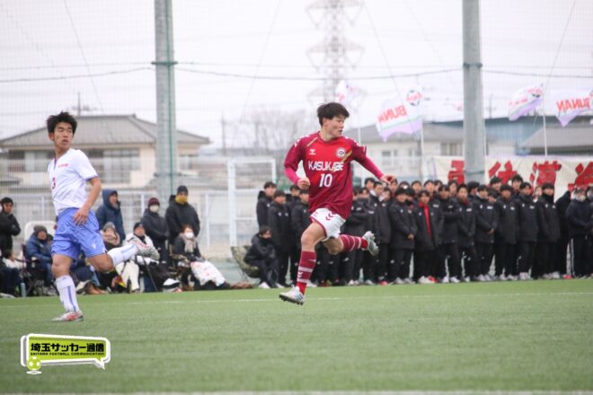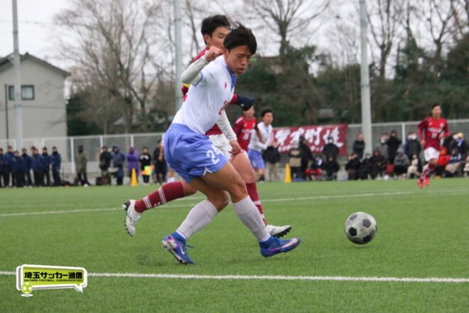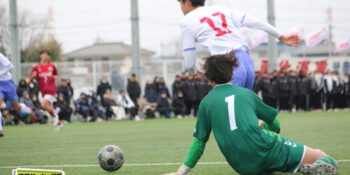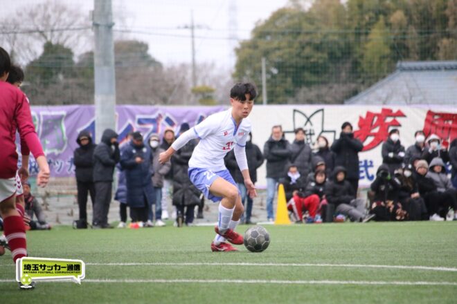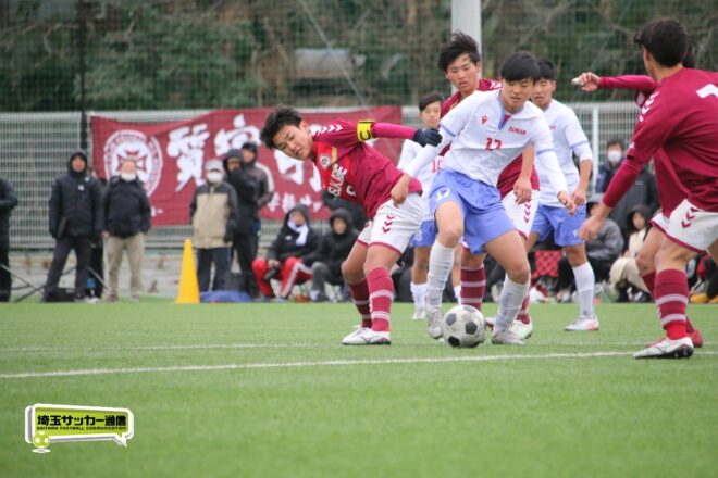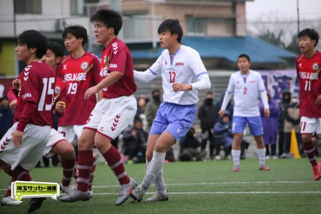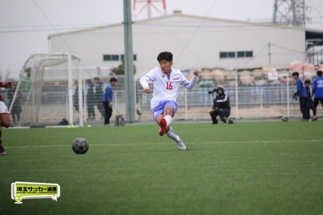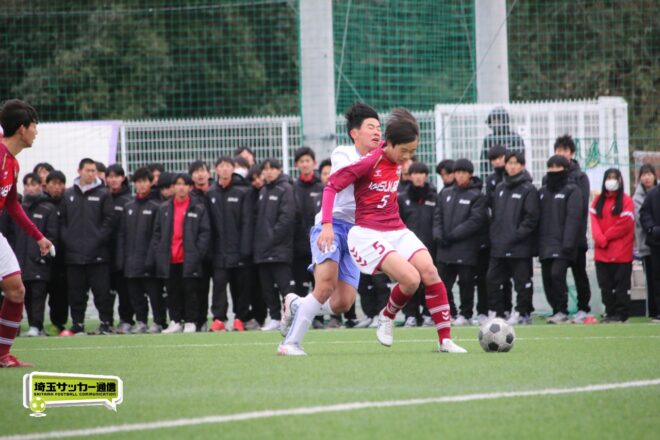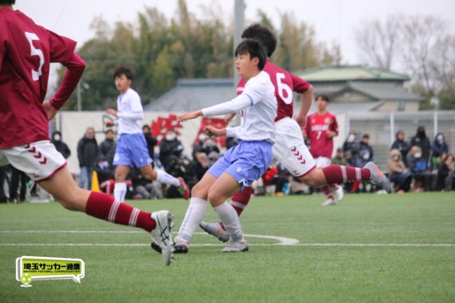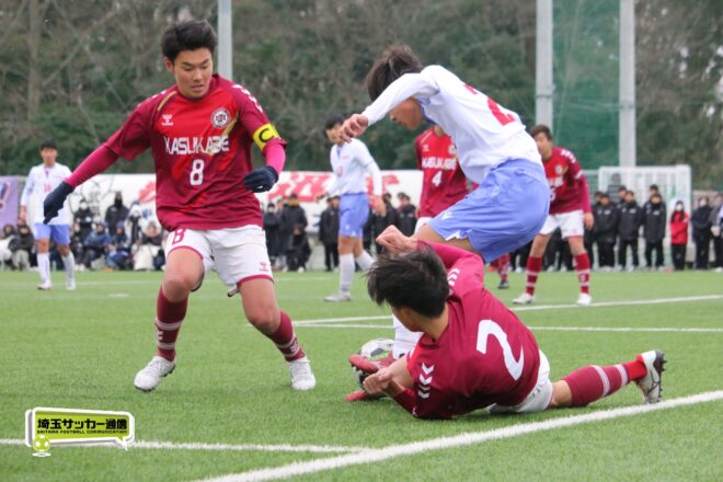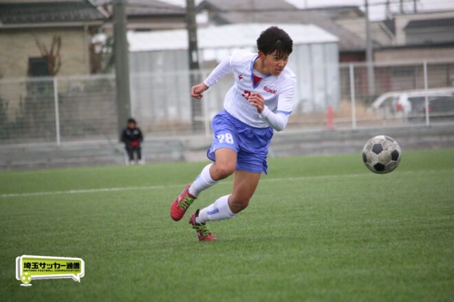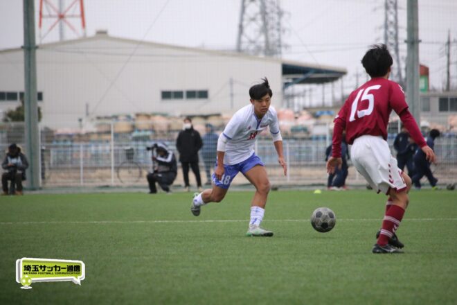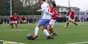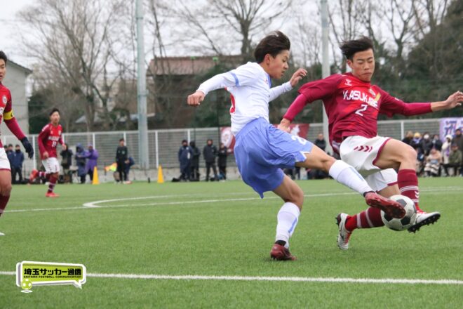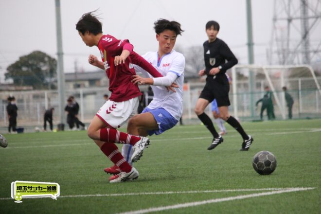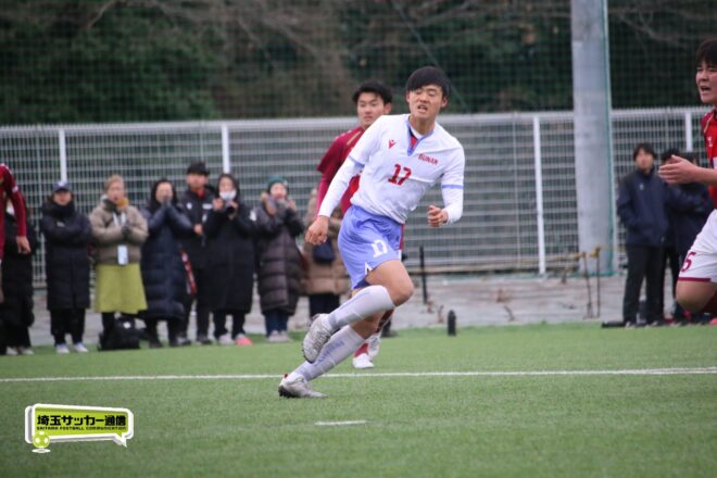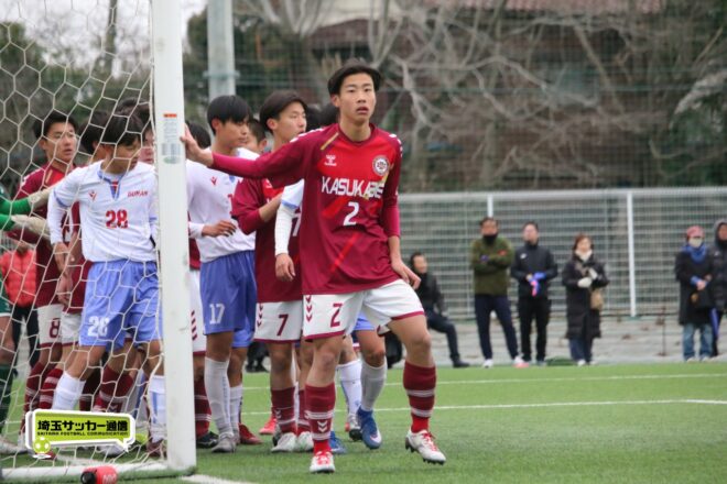 一方、春日部も粘り強く相手の攻撃に対応しながら10番FW夏苅秀隆(2年)がゴールを狙う。だが、武南は33分、沖田が切り込み、マイナスのクロスを渡邉柊が合わせて追加点。37分の沖田のシュートはクロスバーに嫌われたが、2-0で折り返した後半はゴールラッシュとなった。