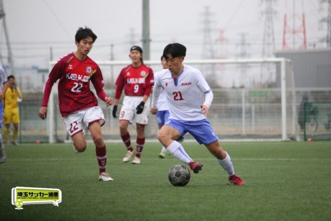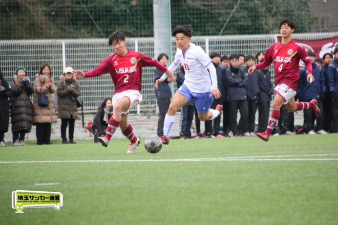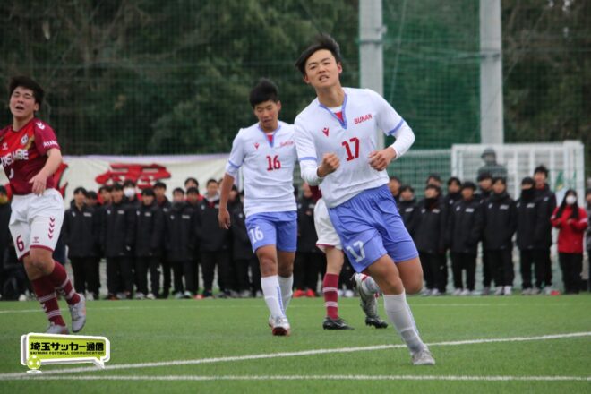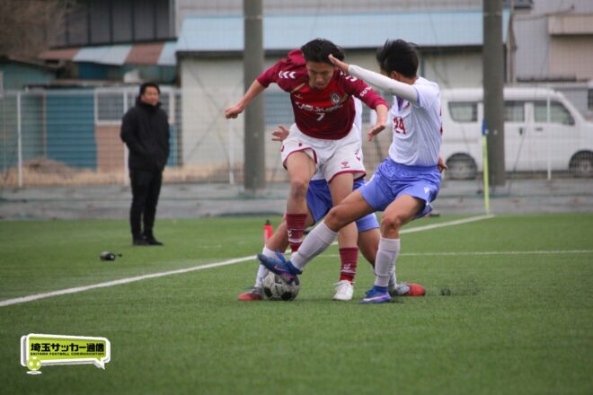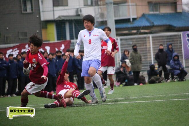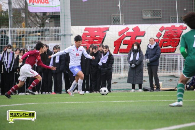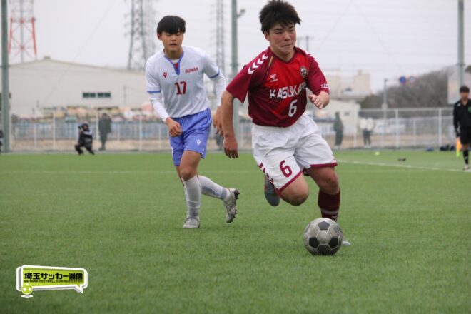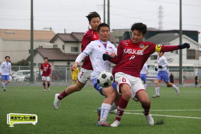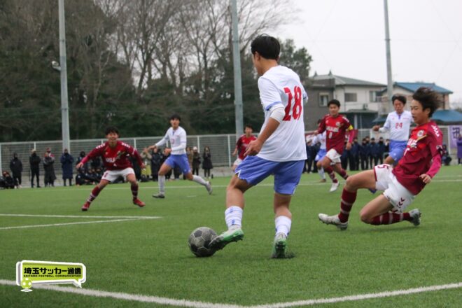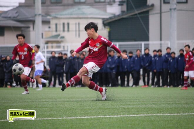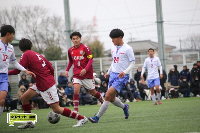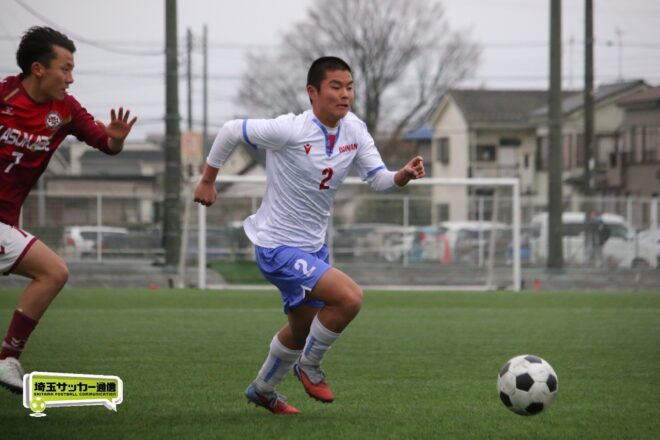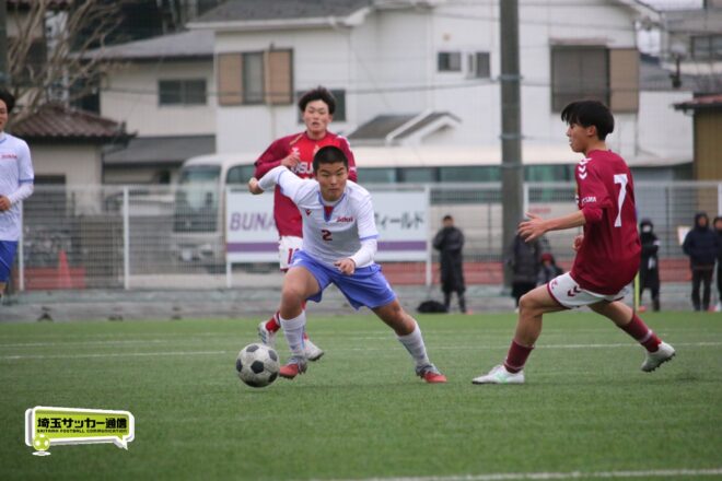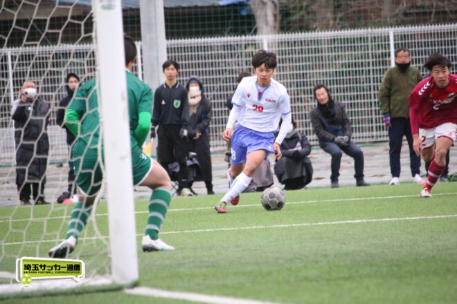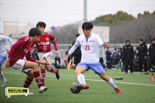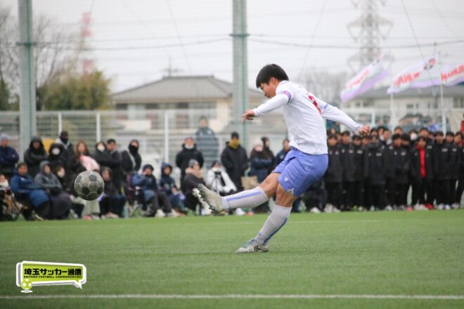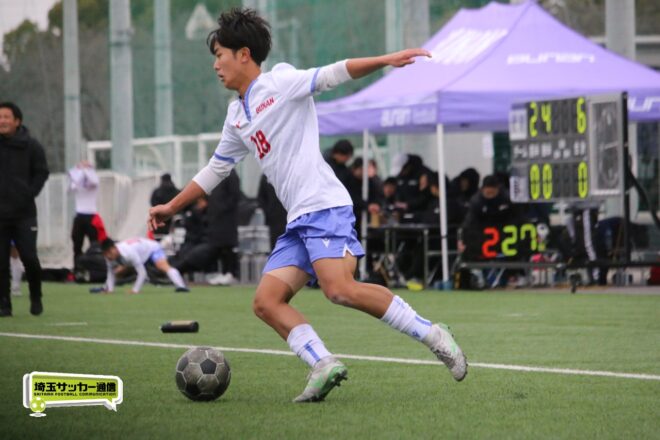 令和7年度埼玉県高校サッカー新人大会1回戦が7日に行われ、2大会ぶりの優勝を狙う武南は東部支部2位の春日部と対戦。武南がFW渡邉柊羽(1年)の4得点など9-0と快勝した。