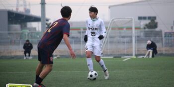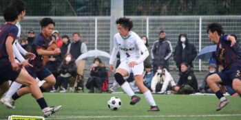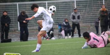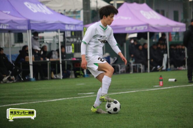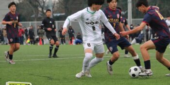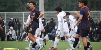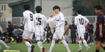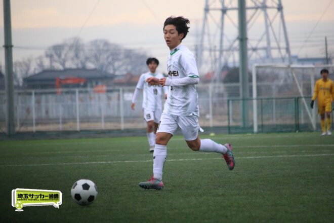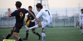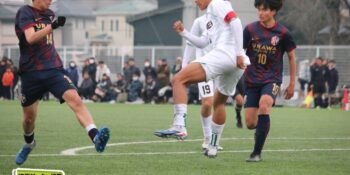ボランチの矢野が多くボールに触りながら、右MF播磨隼佑(1年)や田島が絡みながら攻撃。14分には宇澤が前線からプレッシャーをかけて中盤が回収。MF加々美郁哉(1年)のパスを受けた田島が切り返しからゴールに迫る。27分には1年次にはインターハイで得点も記録している10番の左MF根津優羽(2年)の高速クロスを田島がニアで点で合わせて追加点とした。