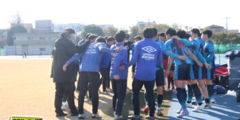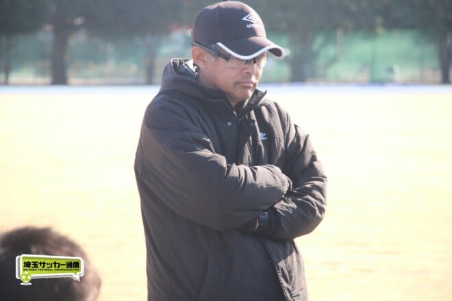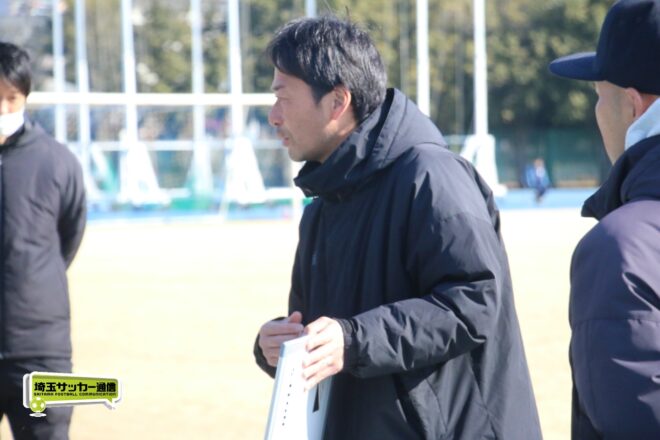聖望学園は終盤押し込まれる時間が続いたが、佐藤慶門(2年)、栢岡孝尚(1年)のCBコンビを中心に最後まで集中を切らさずに勝利。山本監督は「比較的守備はもうここ何年かは継続して、もう一個質の高い、強度を上げるための守備っていうところではトレーニングからだいぶみんな意識してやってきたことだったので、今日はちょっとピッチコンディションもあまり良くない状態でしたけど、よく最後まで走れたと思います」と強力アタックを抑えた守備を讃えた。