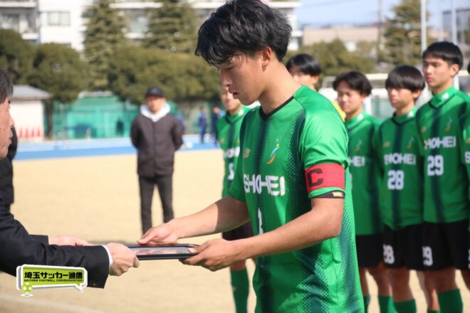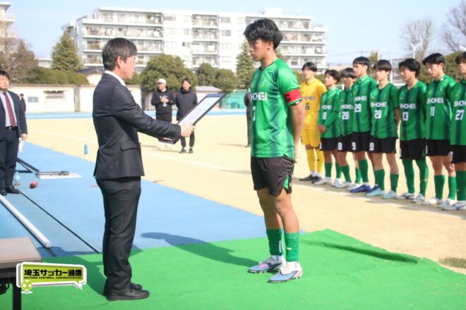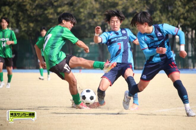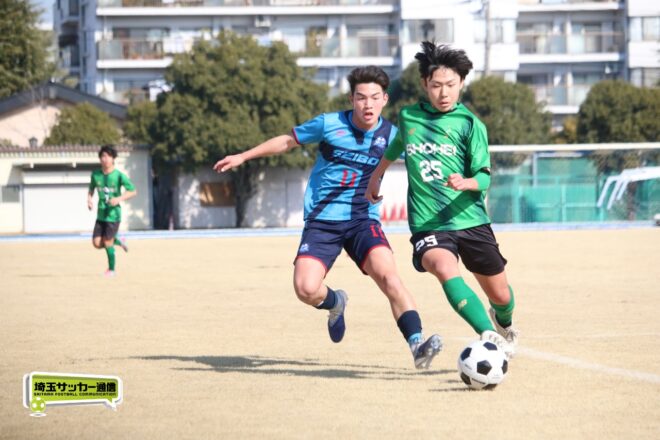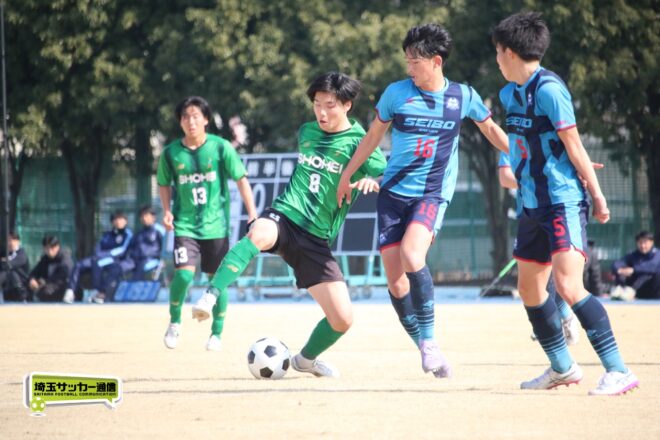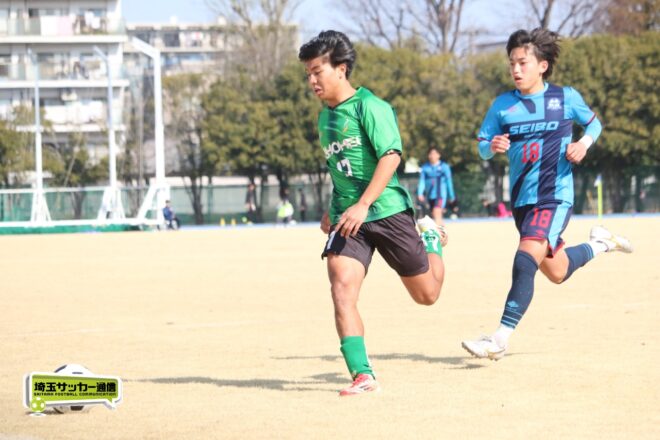 令和7年度埼玉県高校サッカー新人大会は14日に川口青木町公園で準決勝の2試合が行われ、聖望学園が2-0で昌平を下し初の決勝進出、また5月の関東記念大会への出場権を獲得した。