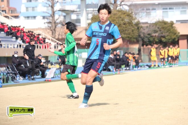 テクニックとスピードに優れる相手に対し、聖望学園は粘り強い守備で対抗した。「相手の攻撃方向に対して縦を切るようなイメージで」(山本昌輝監督)スピードに乗らせないことを徹底。両サイドにも左の澁谷凌駕、右の水村慶門(ともに2年)の両SBがしっかりとついて対応した。
