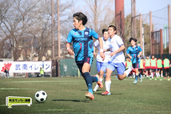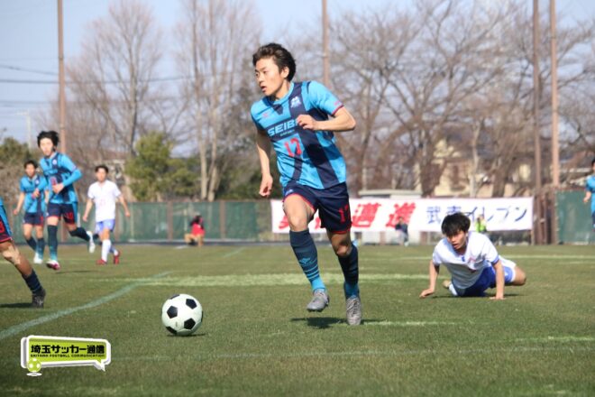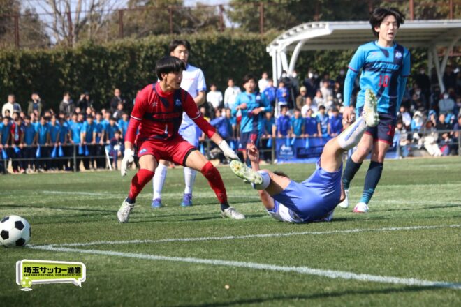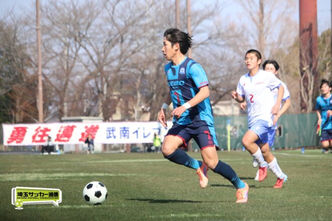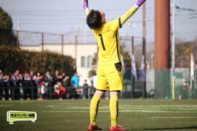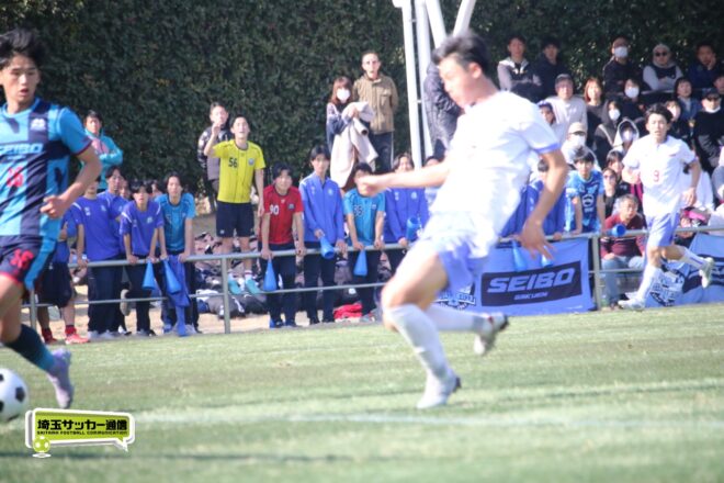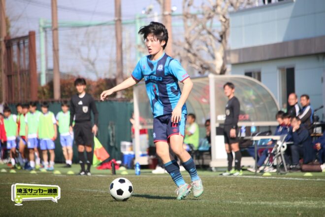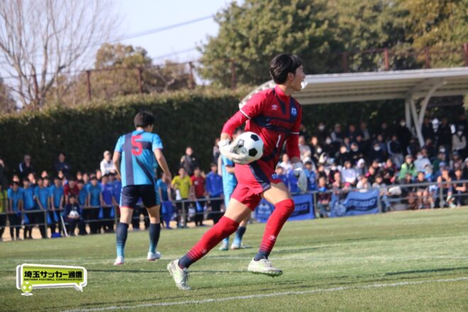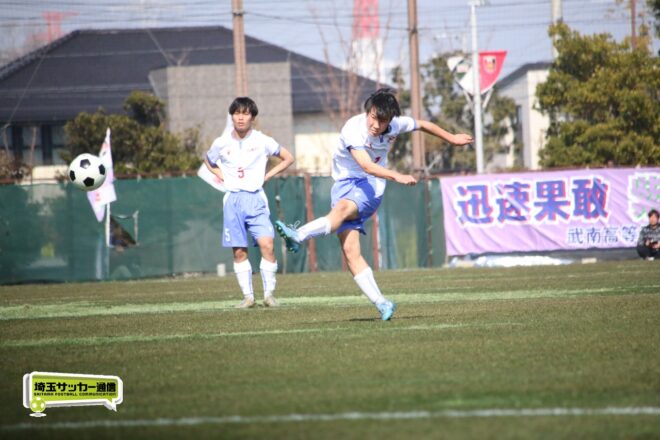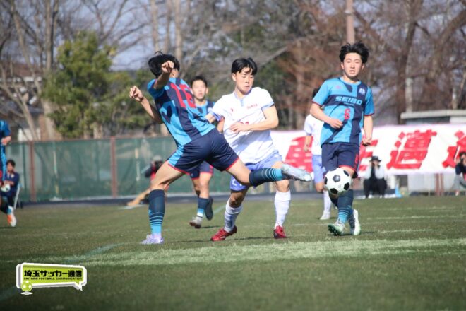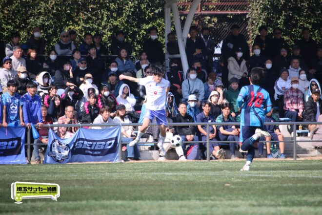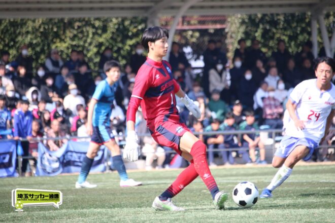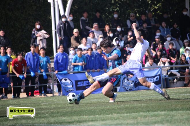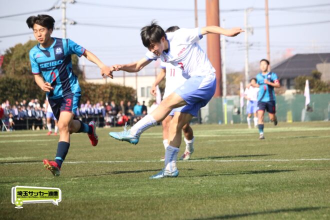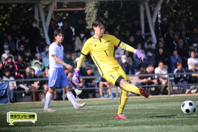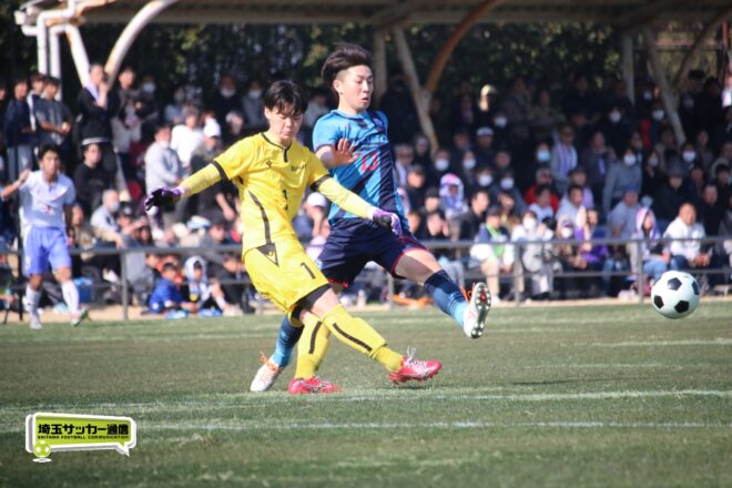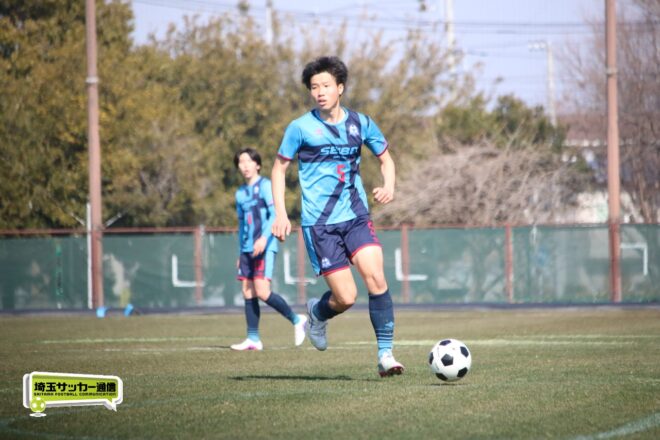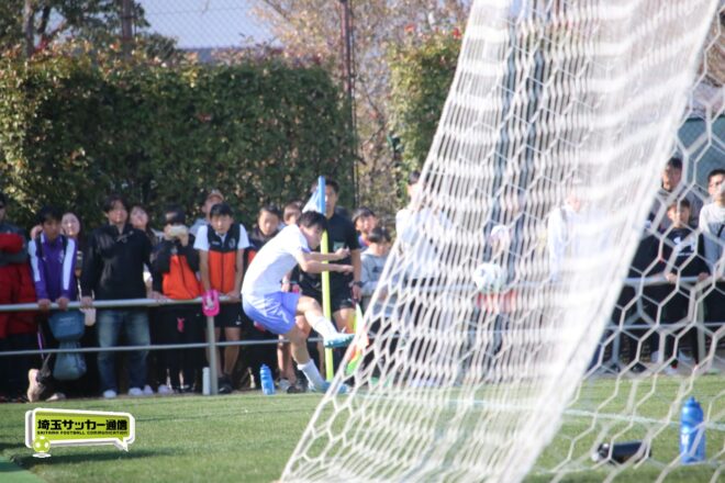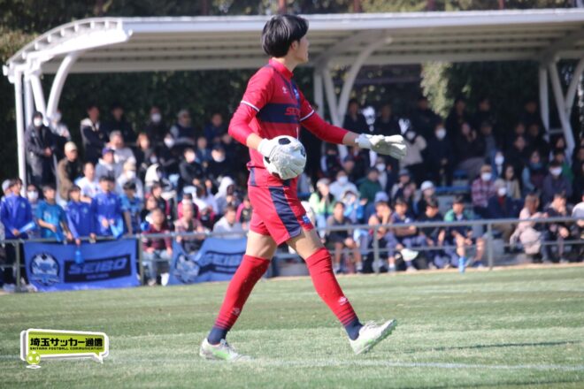 3分には渡辺がドリブルから左足シュートで迫り、6分には今度は鞭馬が仕掛けてクロス。このボールを渡辺がダイレクトで狙うが、聖望学園GK竹川凌平(1年)が好反応を見せて防いだ。