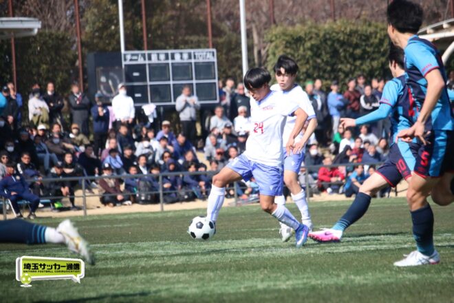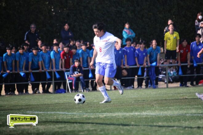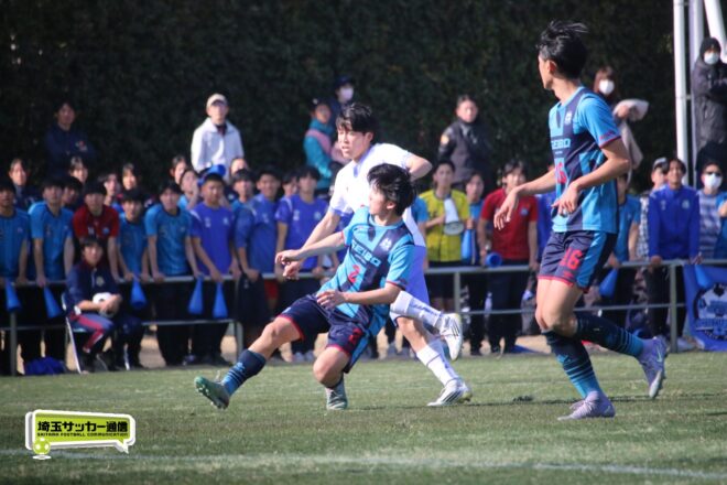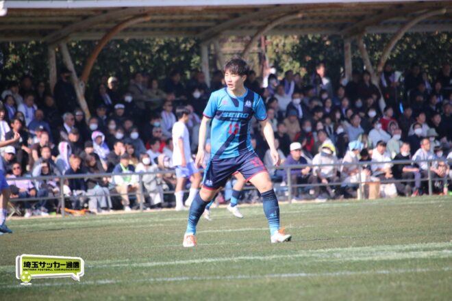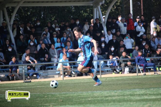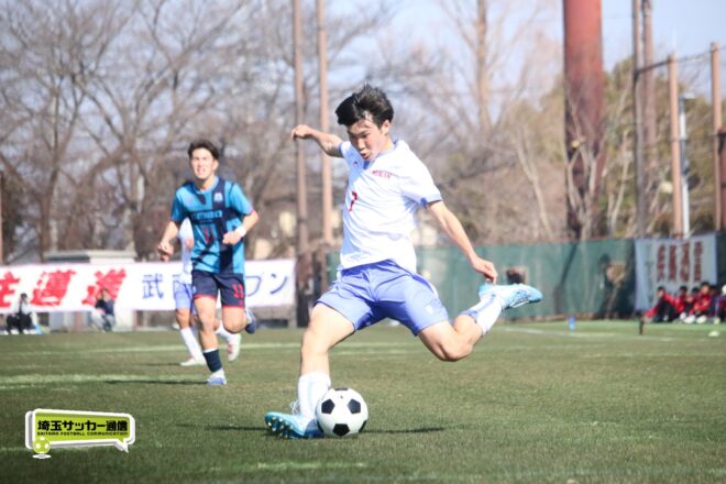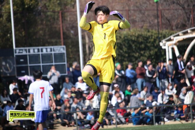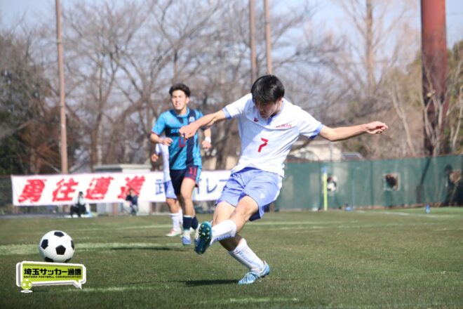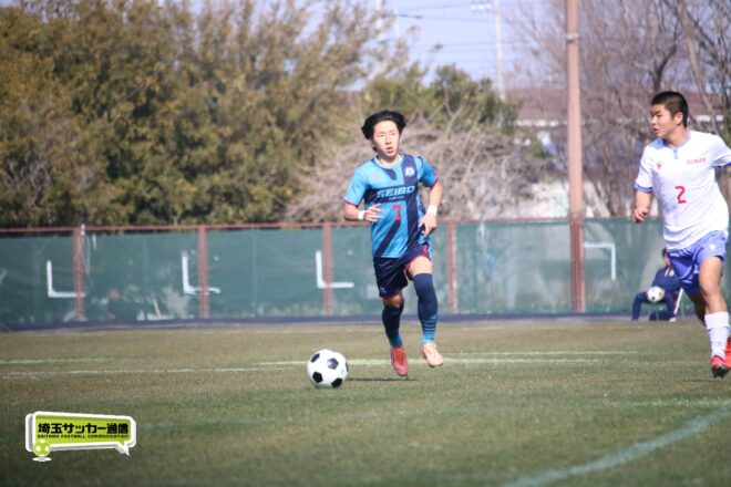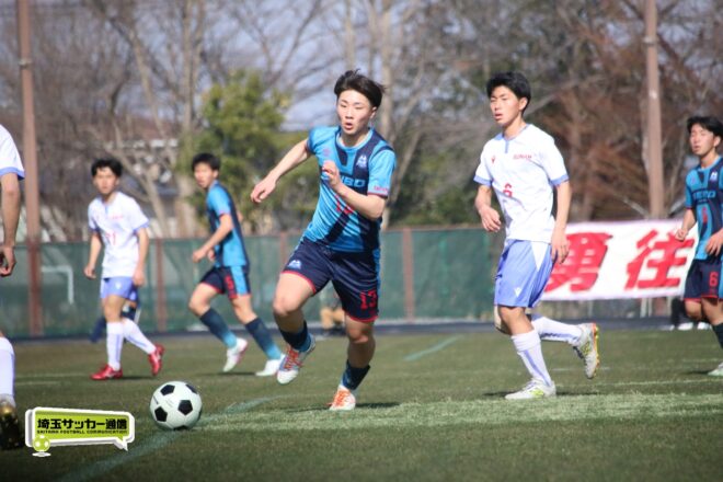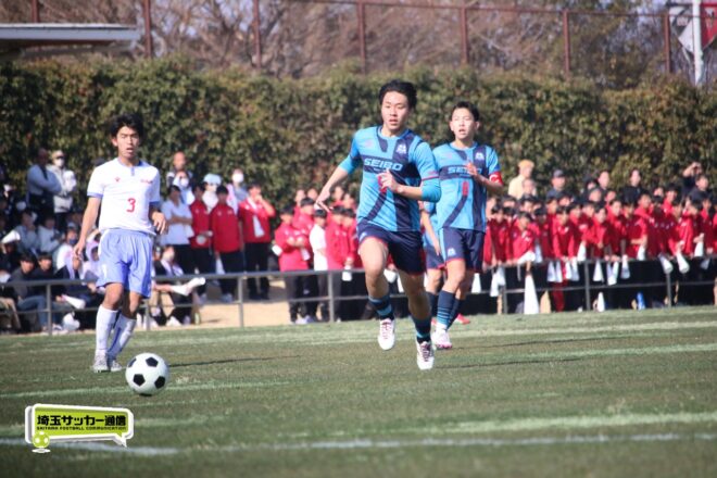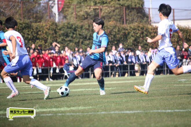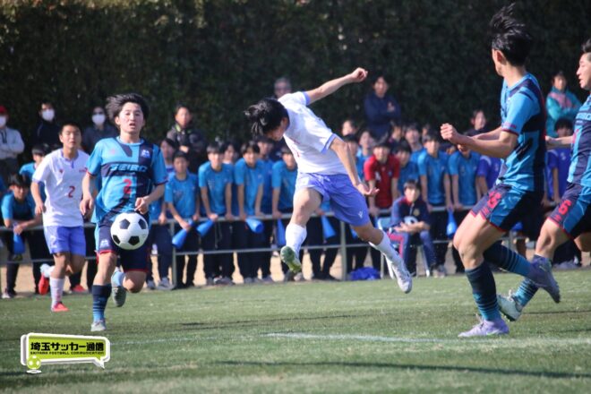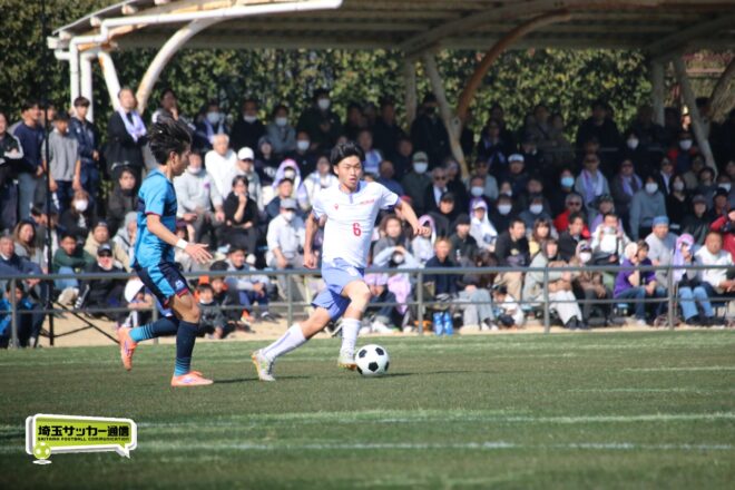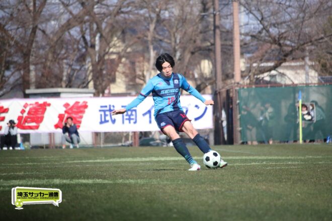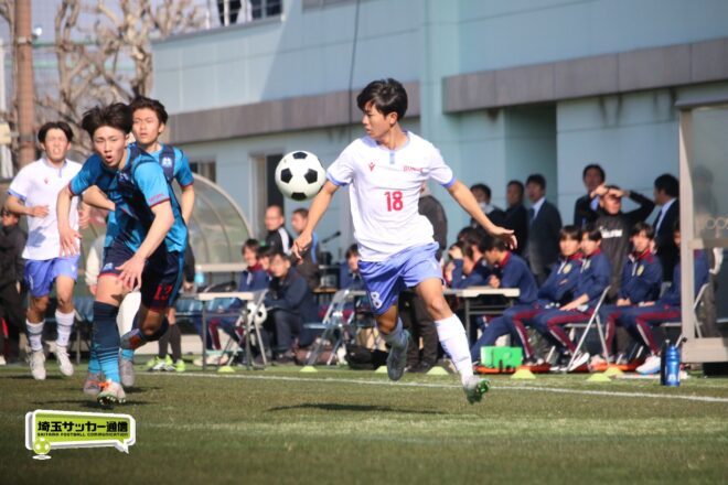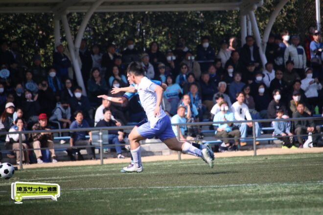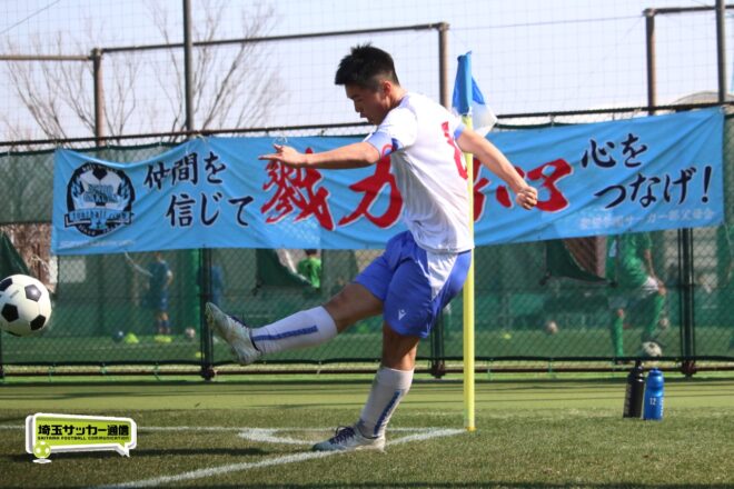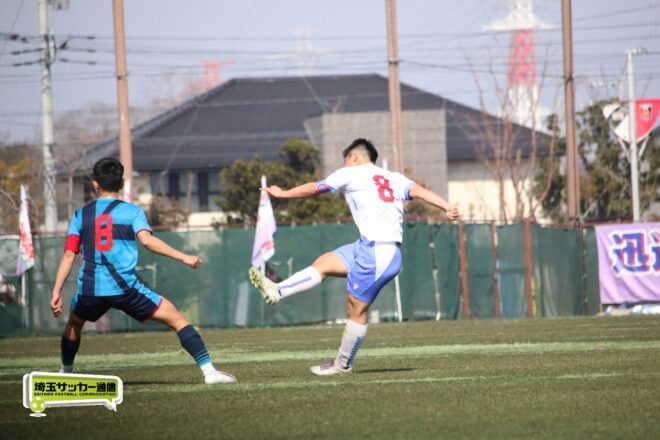 3分には渡辺がドリブルから左足シュートで迫り、6分には今度は鞭馬が仕掛けてクロス。このボールを渡辺がダイレクトで狙うが、聖望学園GK竹川凌平(1年)が好反応を見せて防いだ。