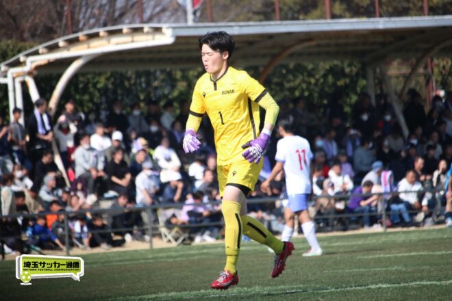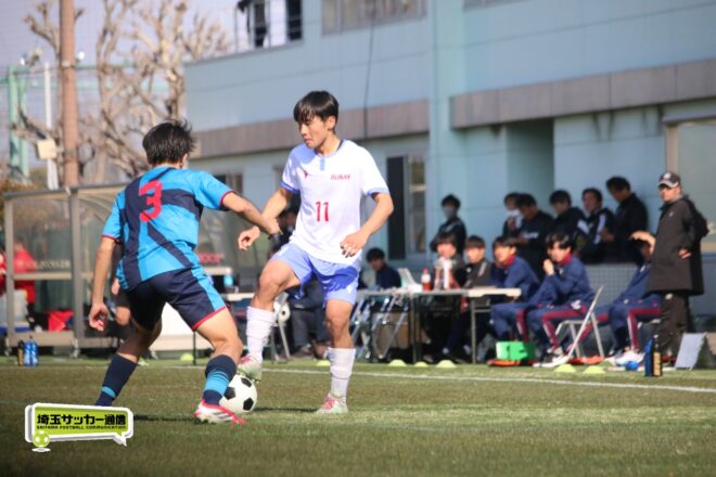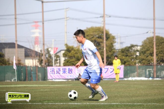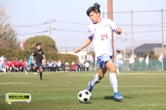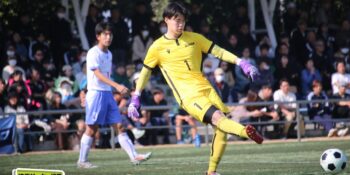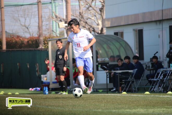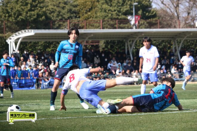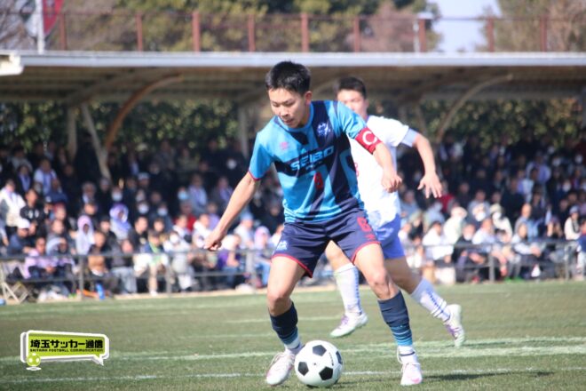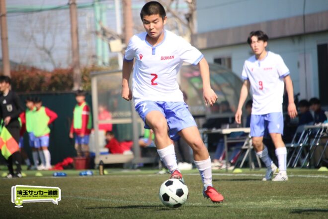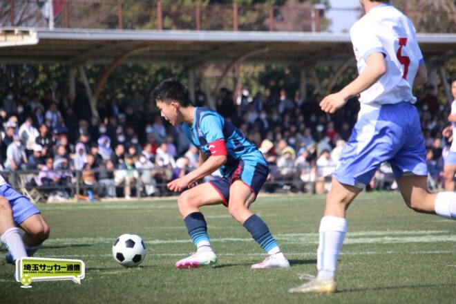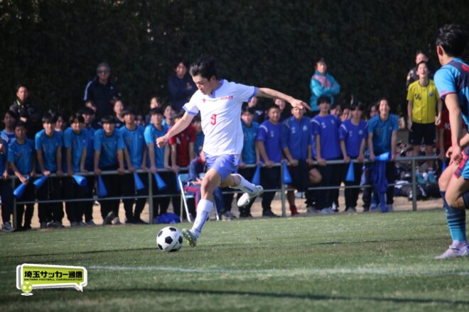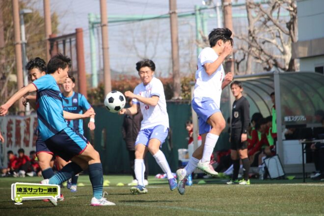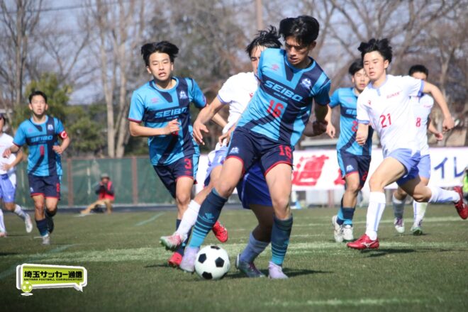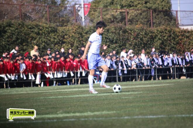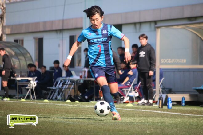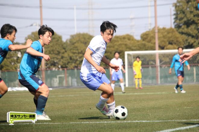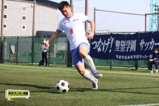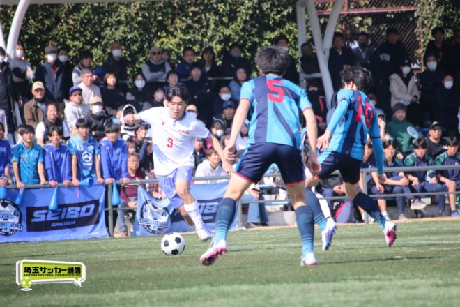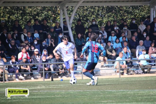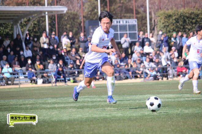 3分には渡辺がドリブルから左足シュートで迫り、6分には今度は鞭馬が仕掛けてクロス。このボールを渡辺がダイレクトで狙うが、聖望学園GK竹川凌平(1年)が好反応を見せて防いだ。