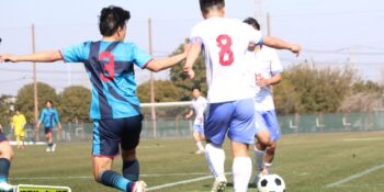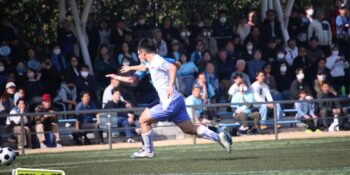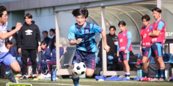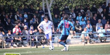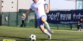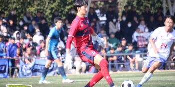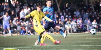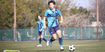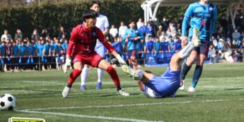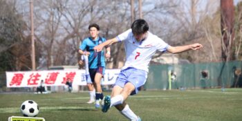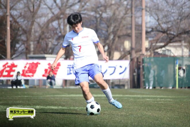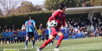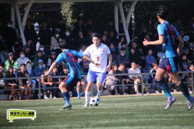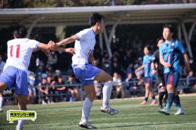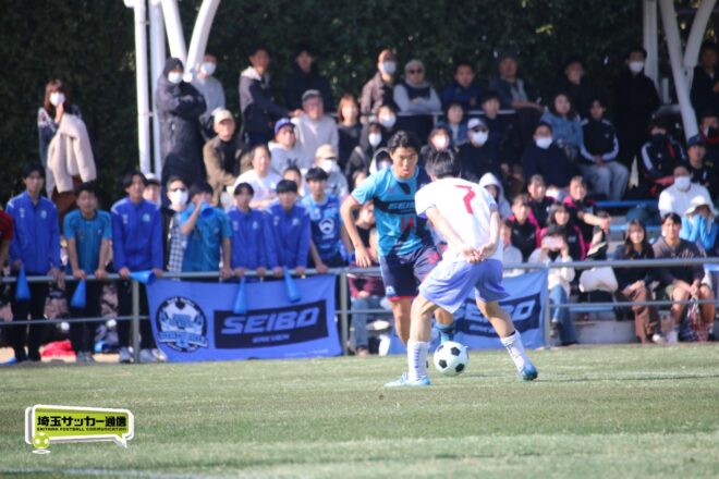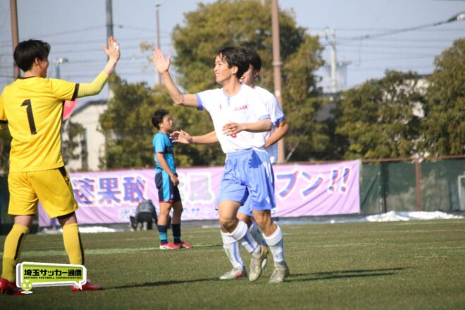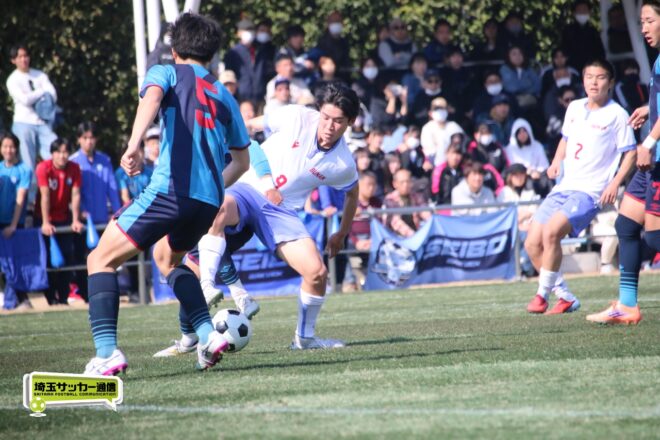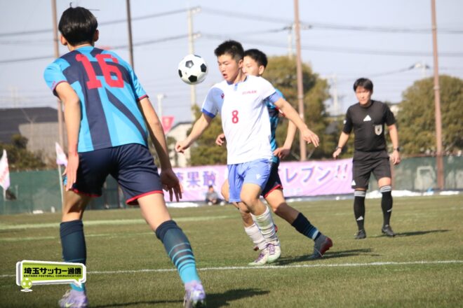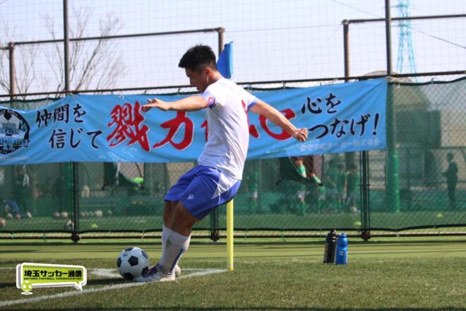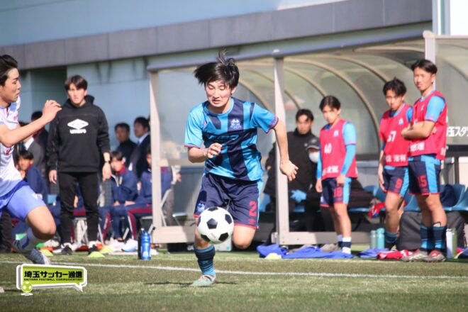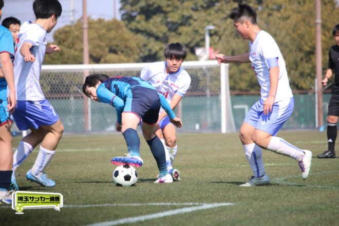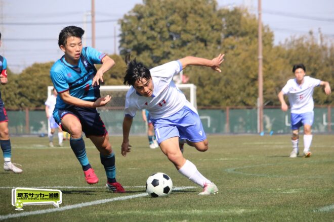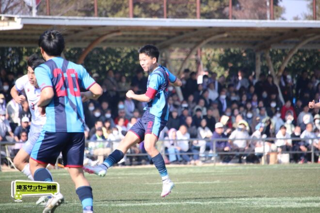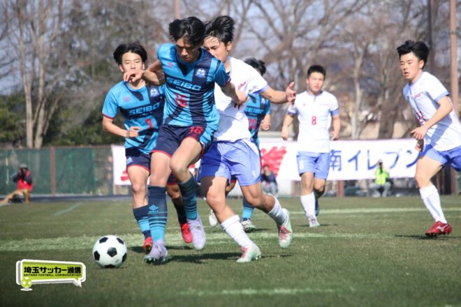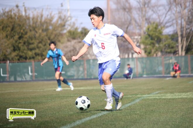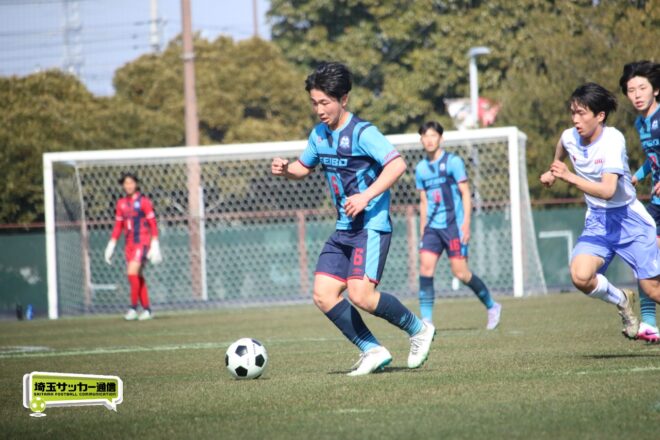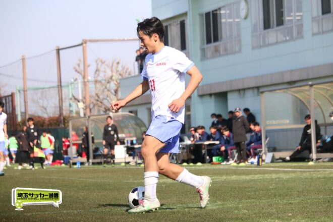 3分には渡辺がドリブルから左足シュートで迫り、6分には今度は鞭馬が仕掛けてクロス。このボールを渡辺がダイレクトで狙うが、聖望学園GK竹川凌平(1年)が好反応を見せて防いだ。