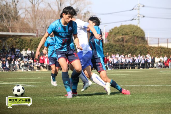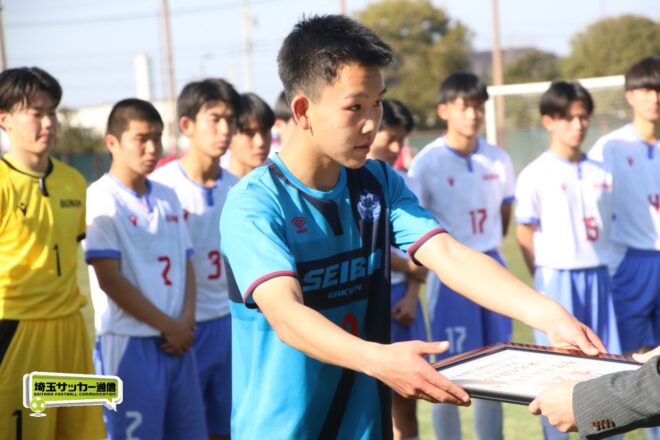 初優勝を狙う聖望学園は、準決勝の昌平戦同様、1年生守護神の竹川を中心に粘り強い守り。その上で後半は前に出る回数も増やす。19分、FW鈴木亮人(2年)のクロスをMF指田風太(1年)が胸で落とし、この攻撃の起点となったMF川野光樹(2年)主将が右足ダイレクトで狙うが、シュートは枠外に。33分にはFW小沼慶朋(1年)が抜け出したが、決めきれなかった。