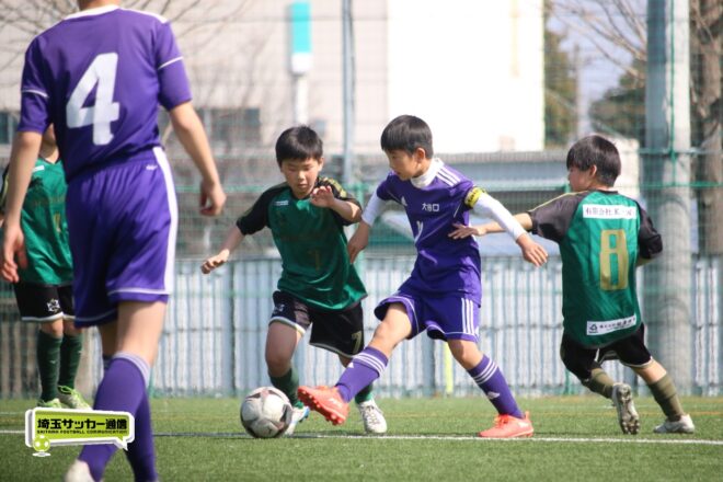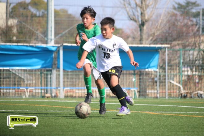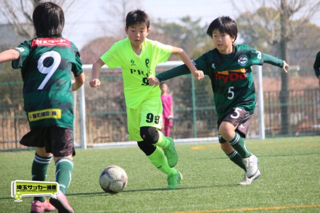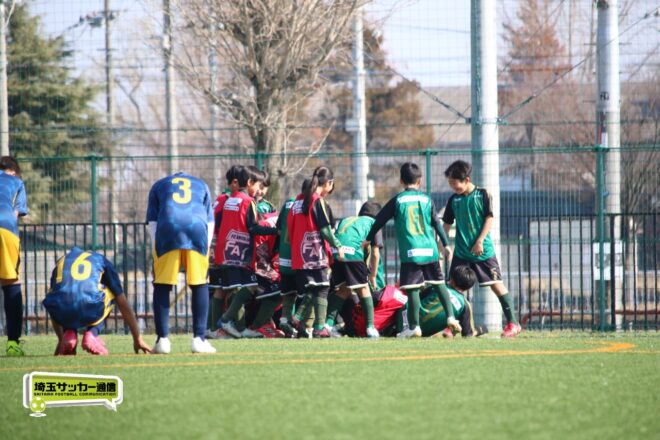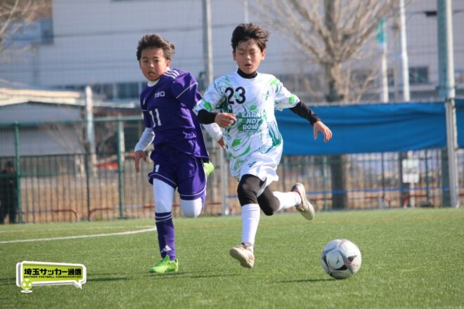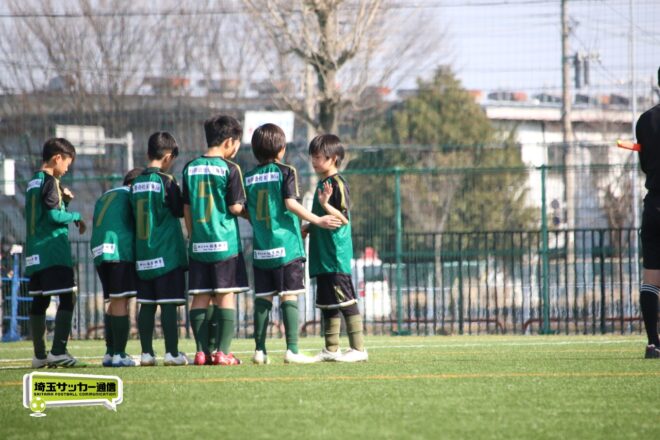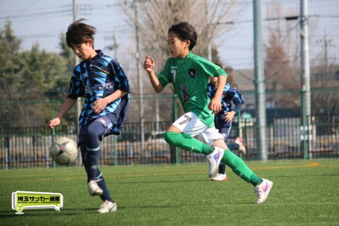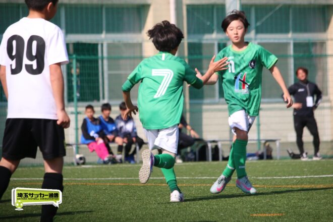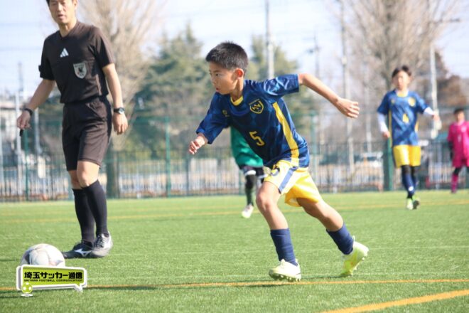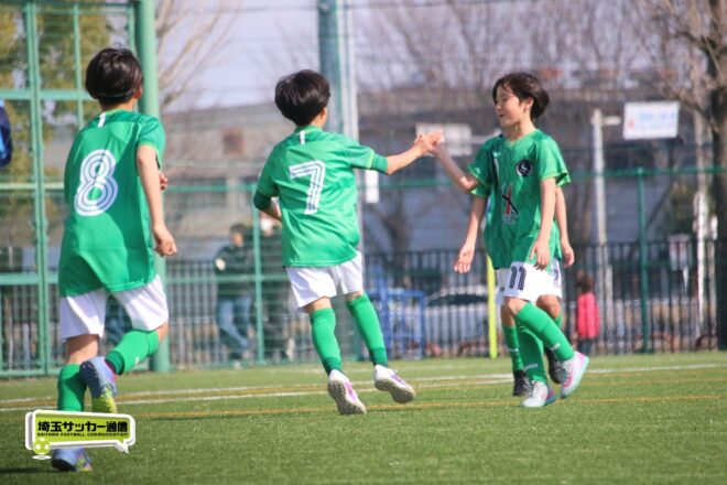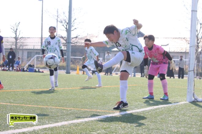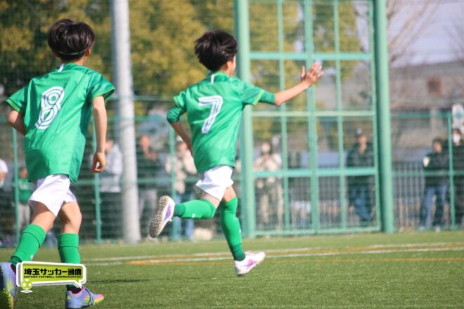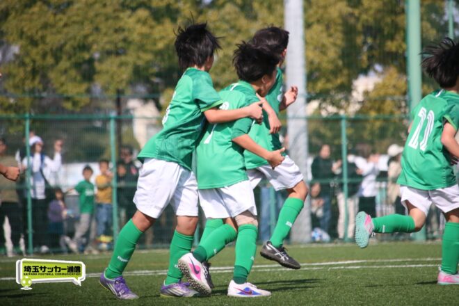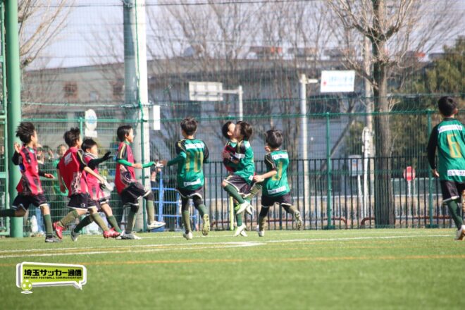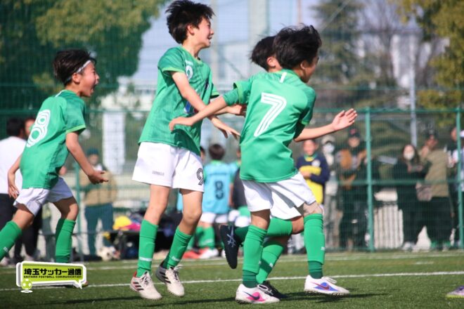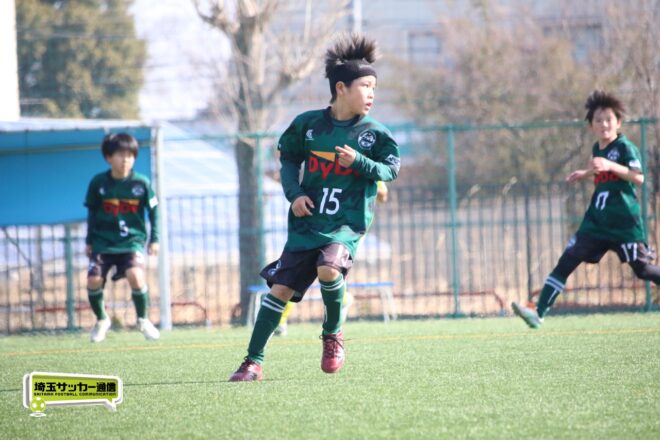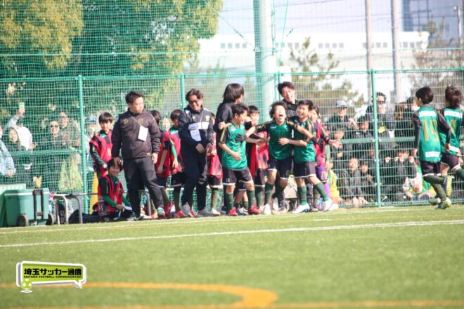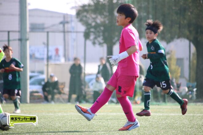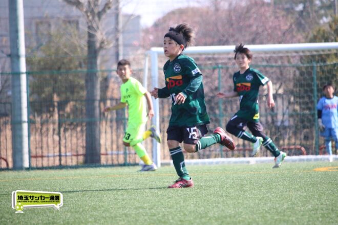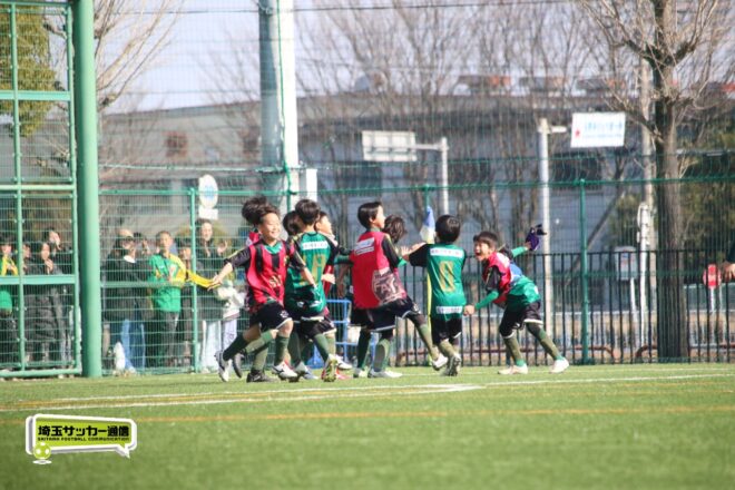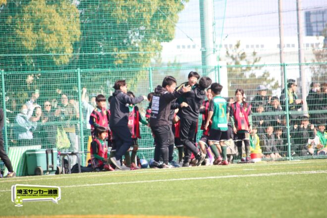 浦和大谷口サッカースポーツ少年団との決定戦は、前半4分に10番田中瑞季(5年)が先制点。その後は決定機を作りながらも追加点が奪えない状況が続いたが、後半8分に沼口が2試合連続のゴールを決めると、終盤の18分には磯部がダメ押しの3点目を沈め、参入戦を勝ち切った。